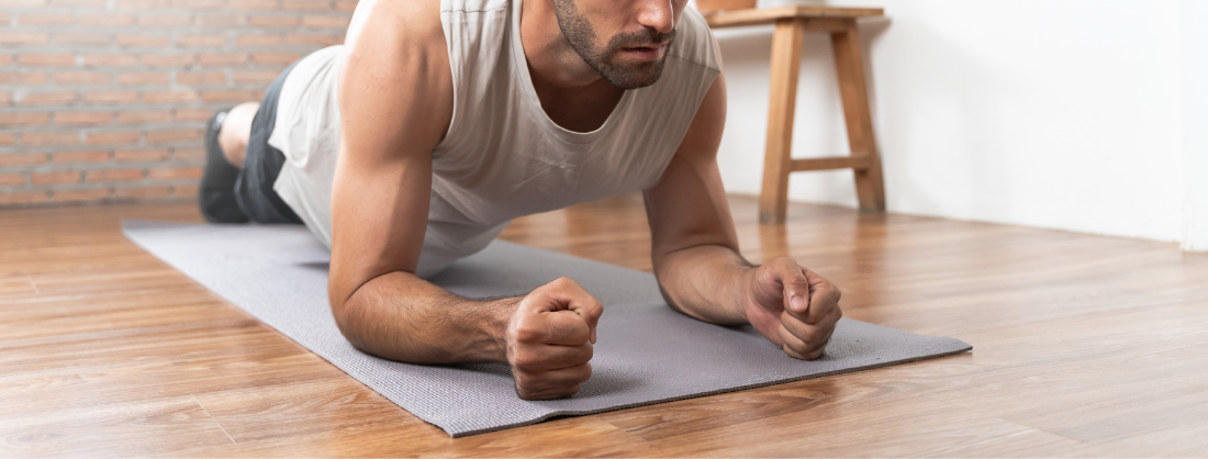 - Exerciții acasă – cum ar fi planșe, genuflexiuni sau flotări. Nu necesită echipament specializat (cu excepția unui covor) și puteți ajusta durata și nivelul de dificultate în funcție de nevoile dvs.