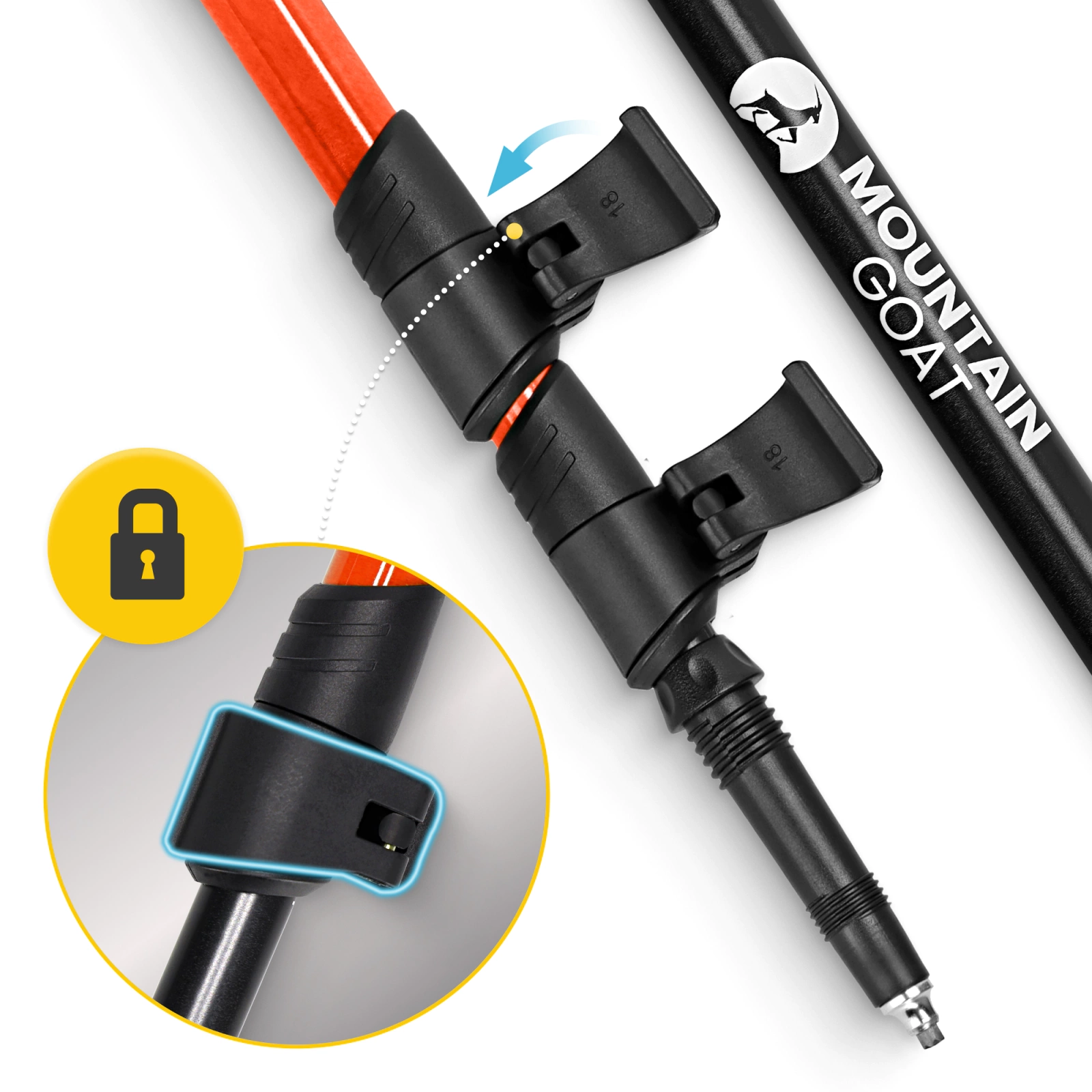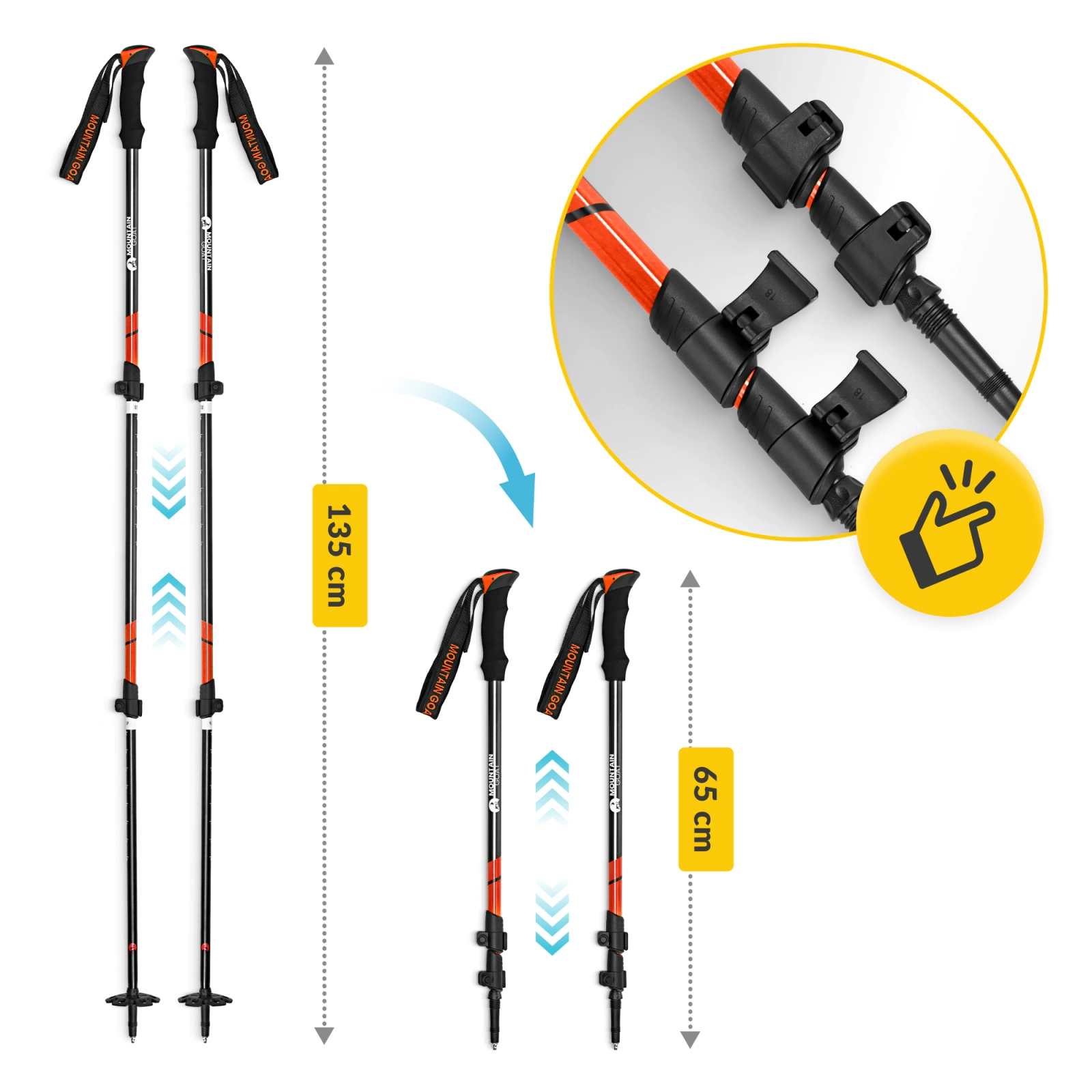 ✅ Sistemul de blocare rapidă permite reglarea lungimii bețelor între 65 și 135 cm.