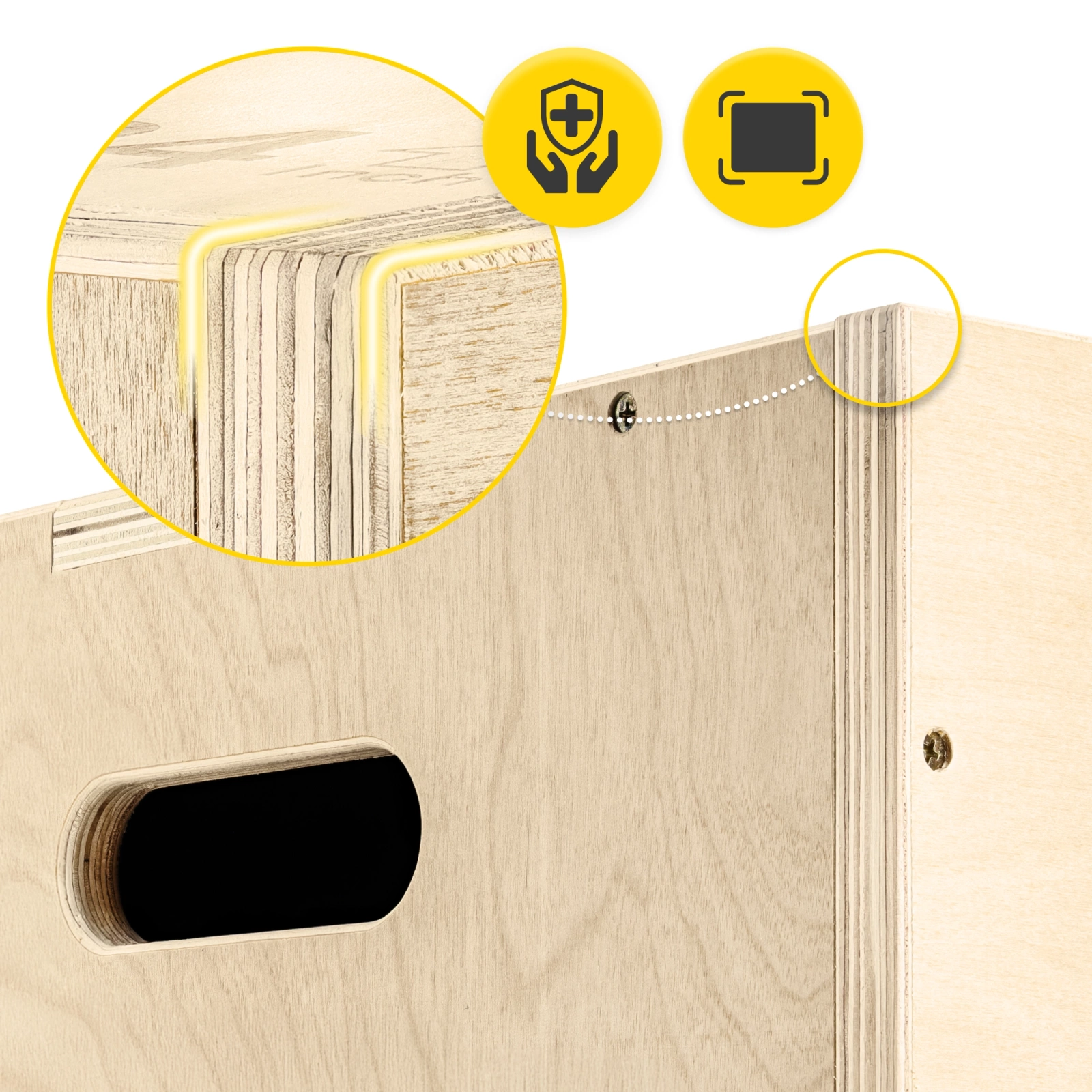 2️⃣ Întărituri interne – cutiei i-au fost adăugate ranforsări interne care distribuie mai bine greutatea utilizatorului, sporind rezistența Jump Box-ului.