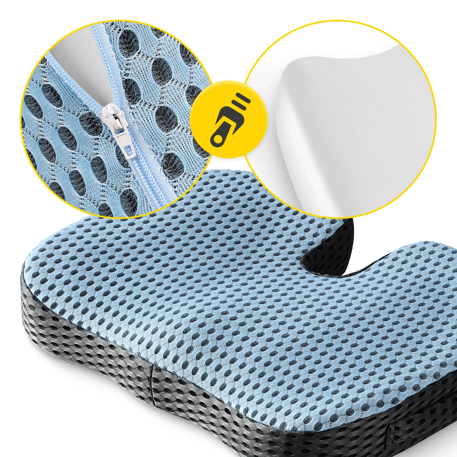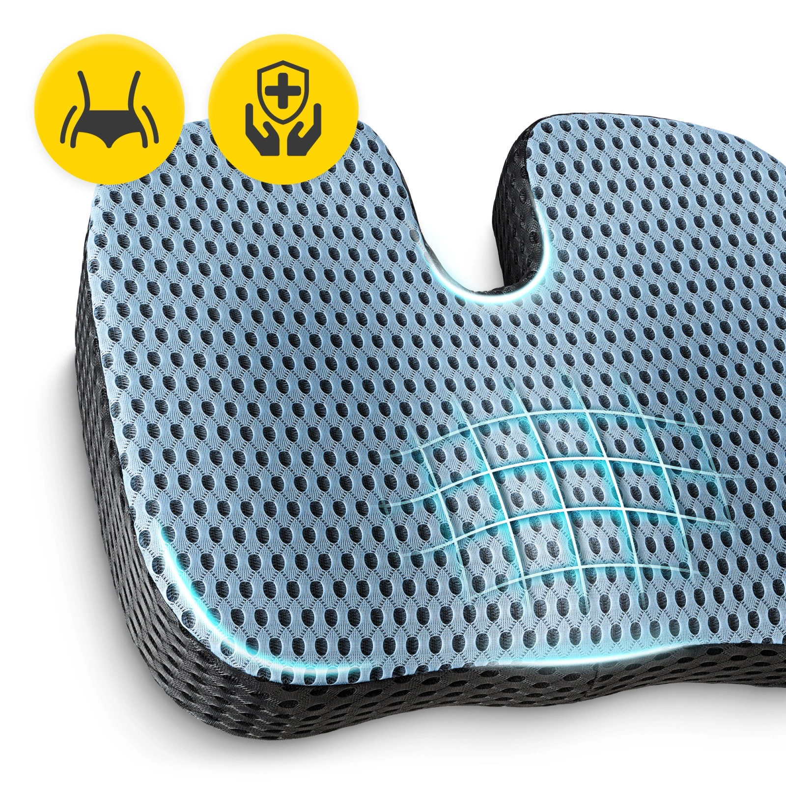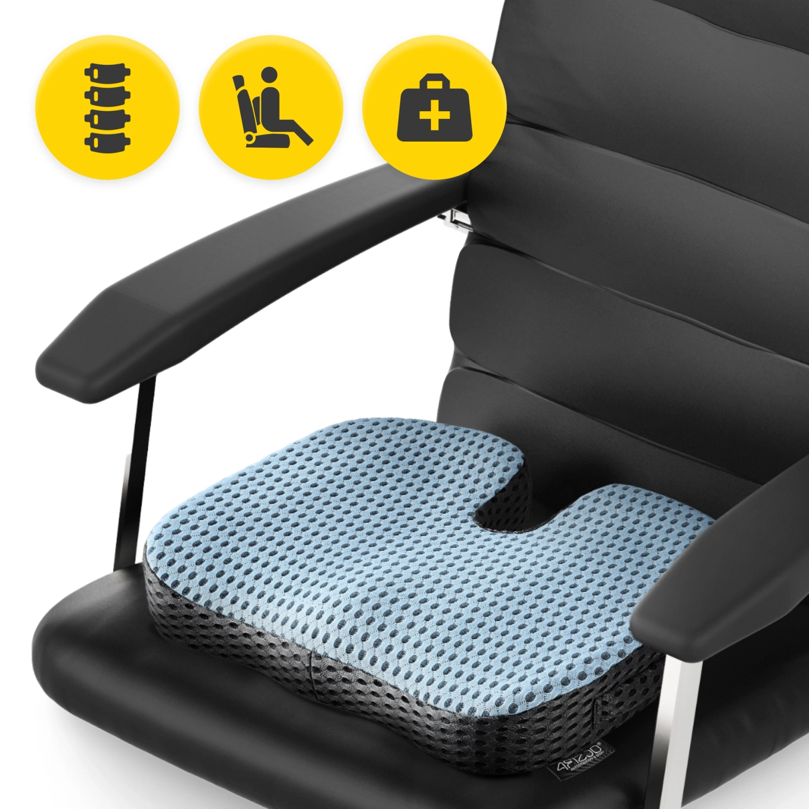 3️⃣ Ameliorează punctele de presiune și distribuie greutatea în mod egal pe fese și coapse. Acest lucru oferă ușurare, reduce tensiunea asupra coloanei vertebrale și previne durerile lombare.