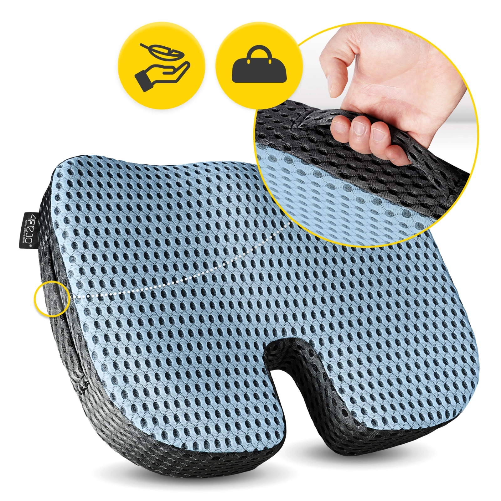 Datorită mărimii pernei, aceasta poate fi ajustată la suprafața dorită. Poți utiliza perna ortopedică pentru scaunele de birou. Perna ortopedică pentru scaun se potrivește, de asemenea, în majoritatea mașinilor. Acest lucru permite să călătorești fără dureri. Orice scaun, cum ar fi scaunele, băncile și chiar scaunele cu rotile permit să folosești această pernă!