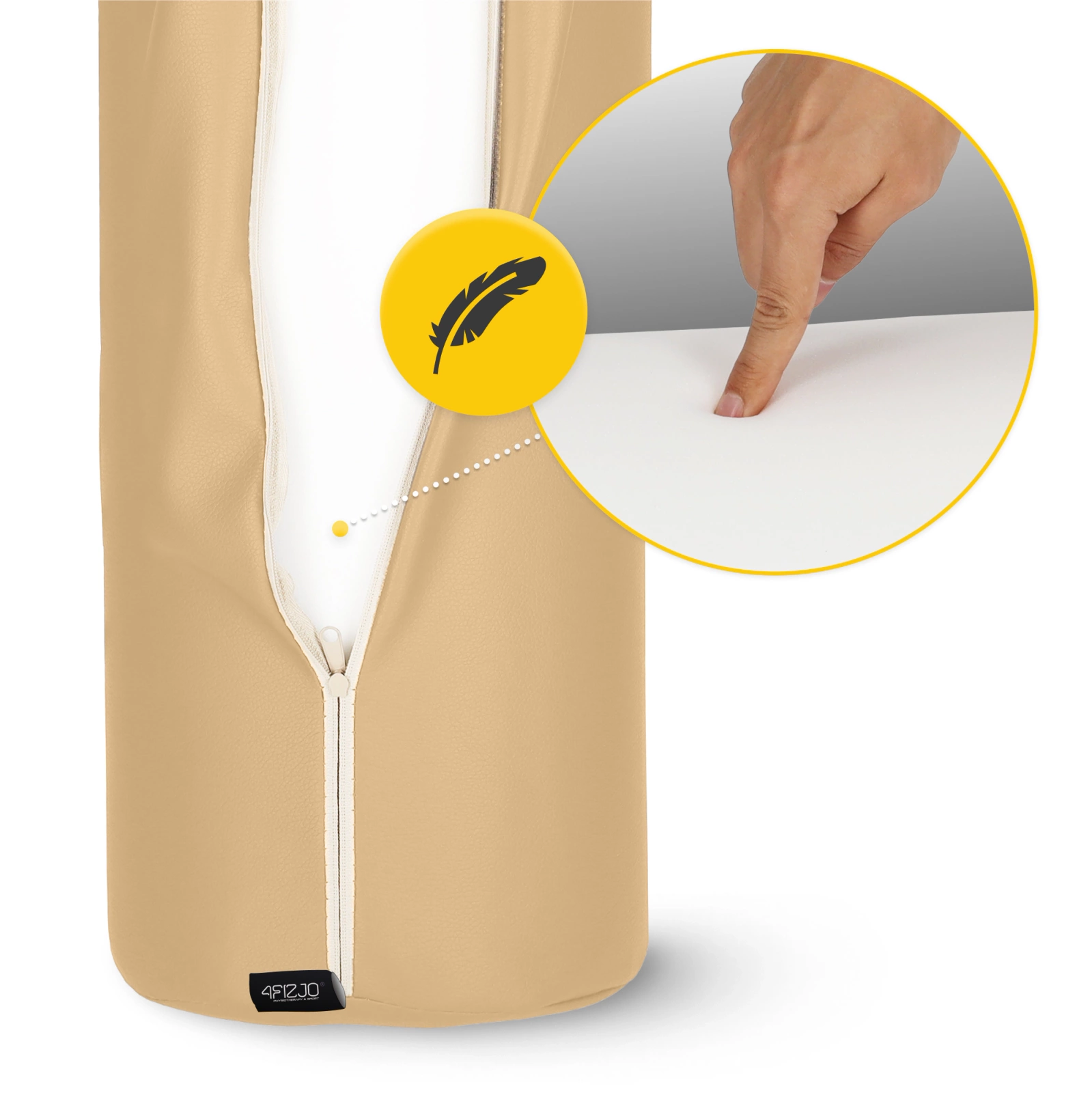 Durabilitatea rolei de reabilitare 4FIZJO este asigurată de acoperișul cu fermoar. Acesta a fost cusut din material PVC ușor lucios. Pe lângă aceasta, rola de masaj este rezistenta la pătare de exemplu, cu uleiuri de masaj. Acest lucru face ca dispozitivul de reabilitare și masaj să fie ușor de curățat și dezinfectat. Dacă este nevoie, poți îndepărta husa din spumă.