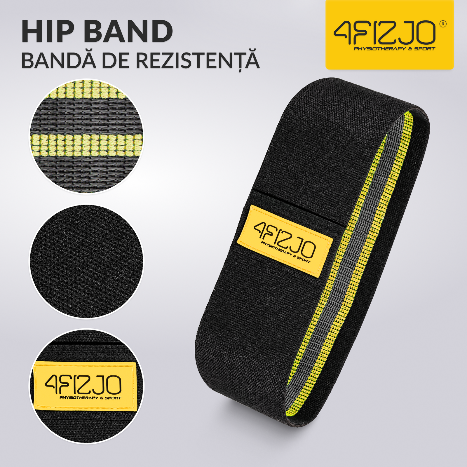 HIP BAND 4FIZJO – bandă elastică pentru exerciții, negru-galben 10-15 kg