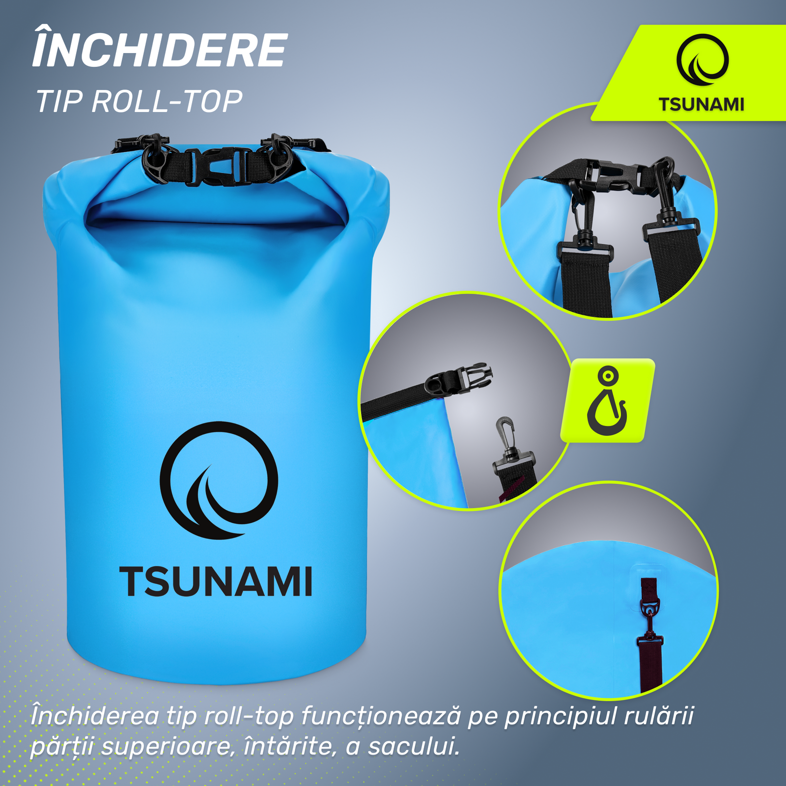 Cum să închizi corect sacul sportiv impermeabil TSUNAMI?