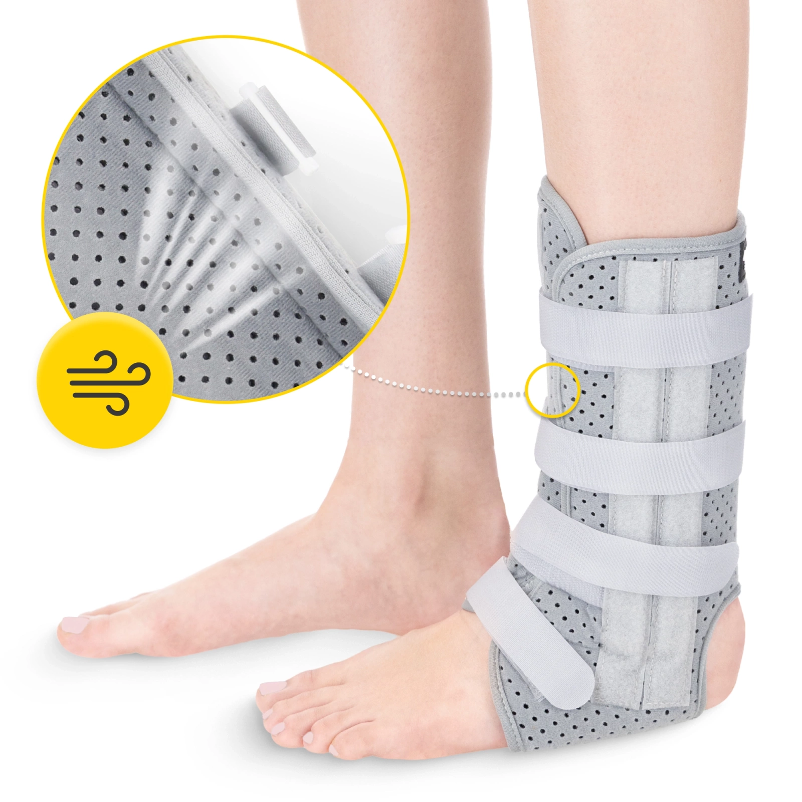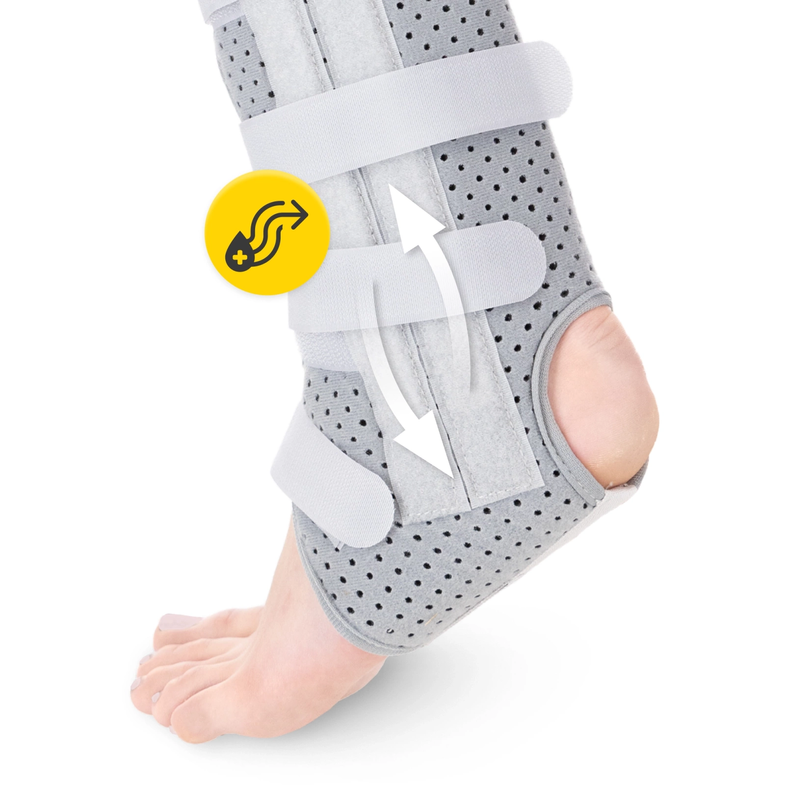 În plus, țesătura este plăcută la atingere, neiritantă, influențând astfel confortul în timpul purtării. Micile perforații din țesătură asigură o mare ventilație și respirabilitate, iar piciorul nu transpiră excesiv. Acest lucru face ca stabilizatorul să fie potrivit pentru toate anotimpurile.