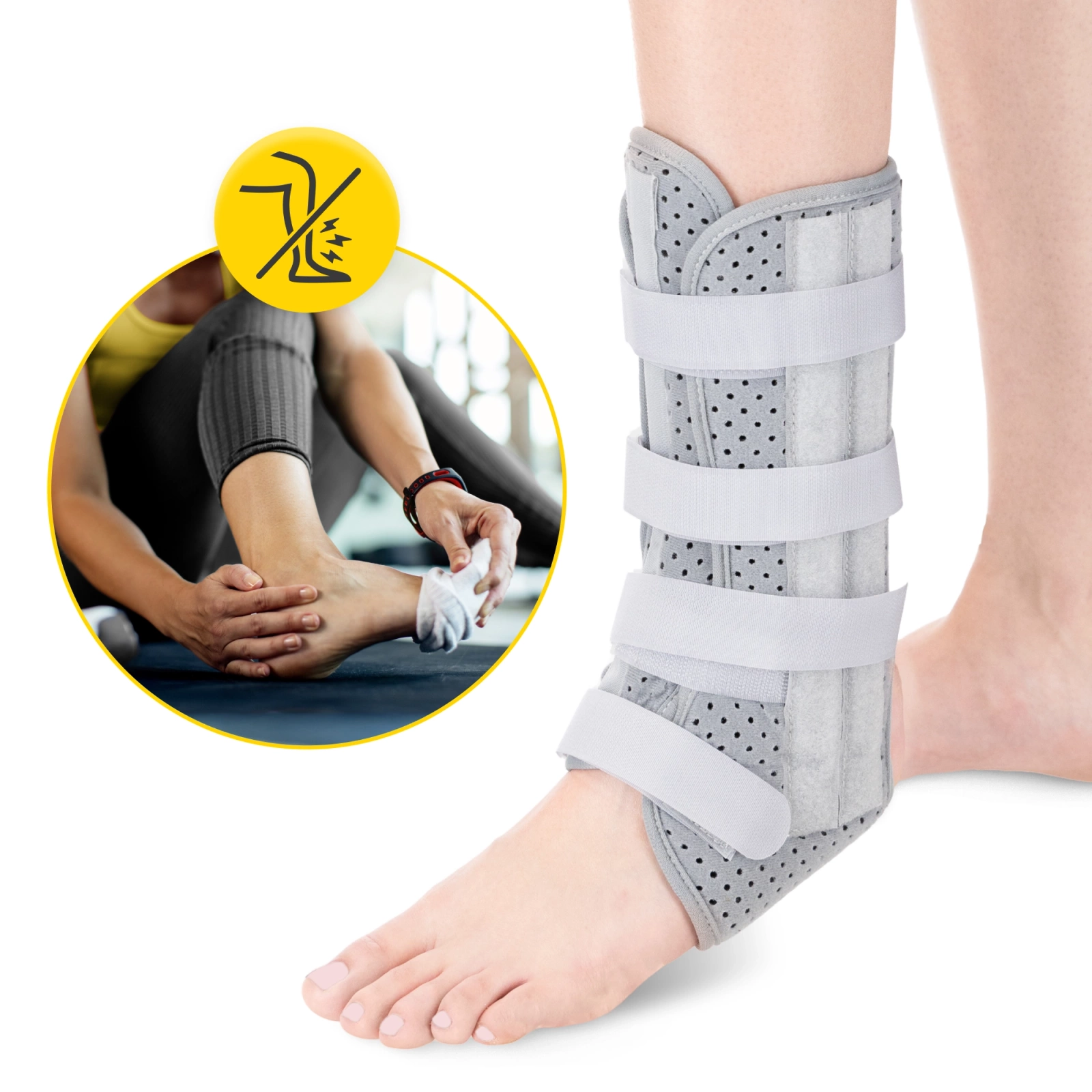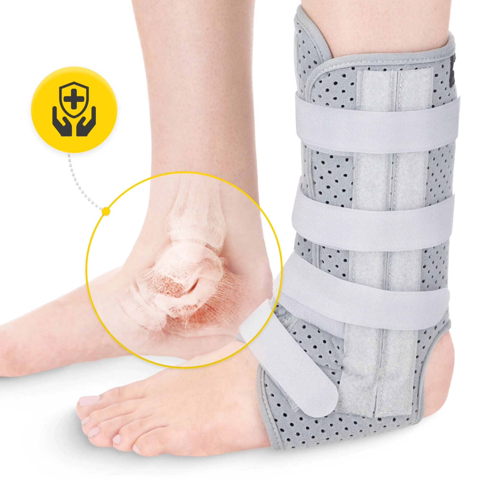 ▶️ Pentru protecția și ameliorarea articulației gleznei, a ligamentelor și a mușchilor.