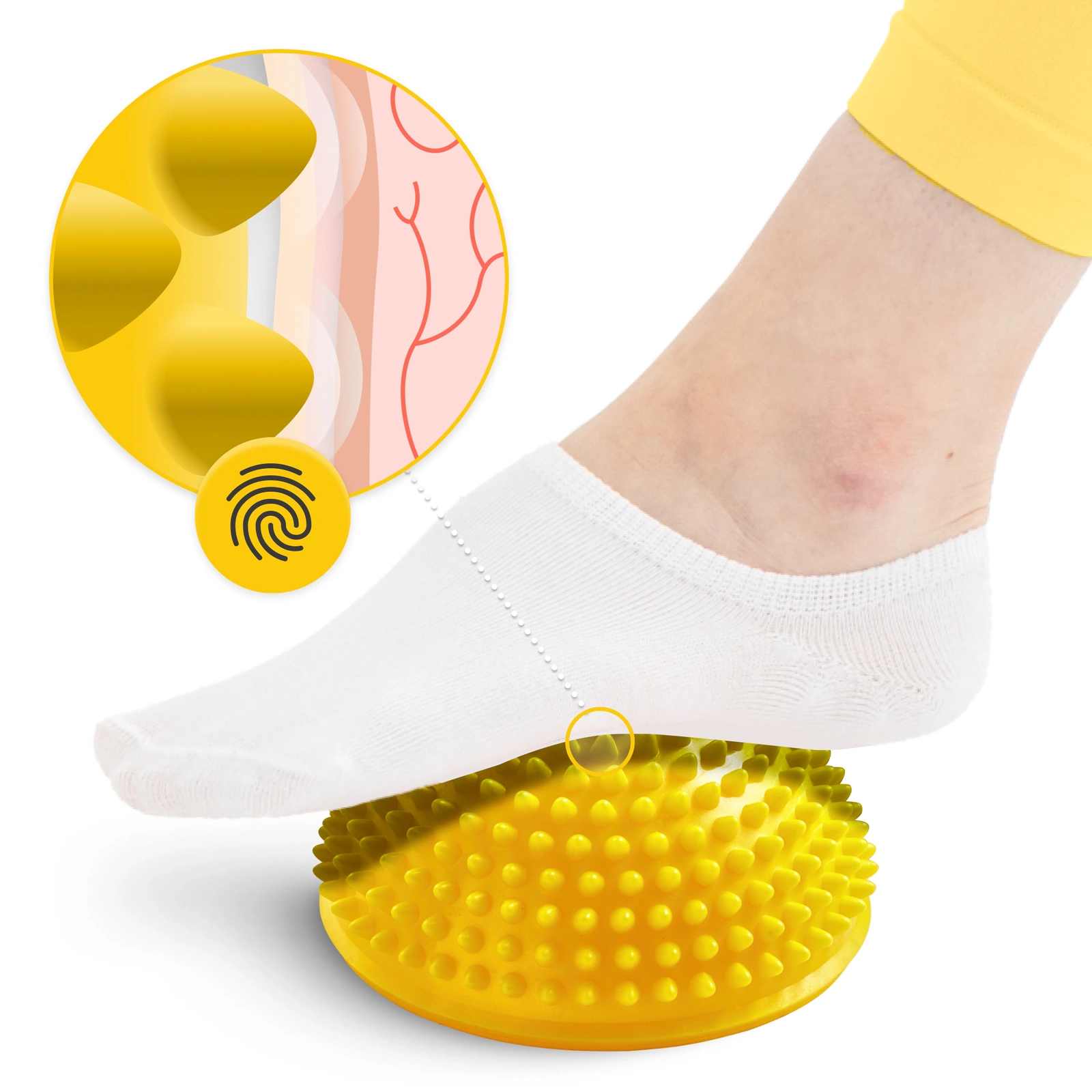 Tensiune, problemele de coordonare motorie sau dureri în tălpile picioarelor sunt probleme care te afectează zilnic? Sau poate ești o persoană după o leziune sau un accident și dorești să te întorci în formă? Jumătatea de minge senzorială este alegerea ideala în oricare dintre aceste cazuri! Utilizarea extensivă a jumătății de minge cu țepi ajuta la stimularea senzațiilor profunde și relaxează țesuturile tensionate. O poți utiliza în diverse forme - culcat pe ea, în picioare sau așezat. Faci exerciții acasă, la sală sau în sala de corecție, adică așa cum îți place cel mai mult.