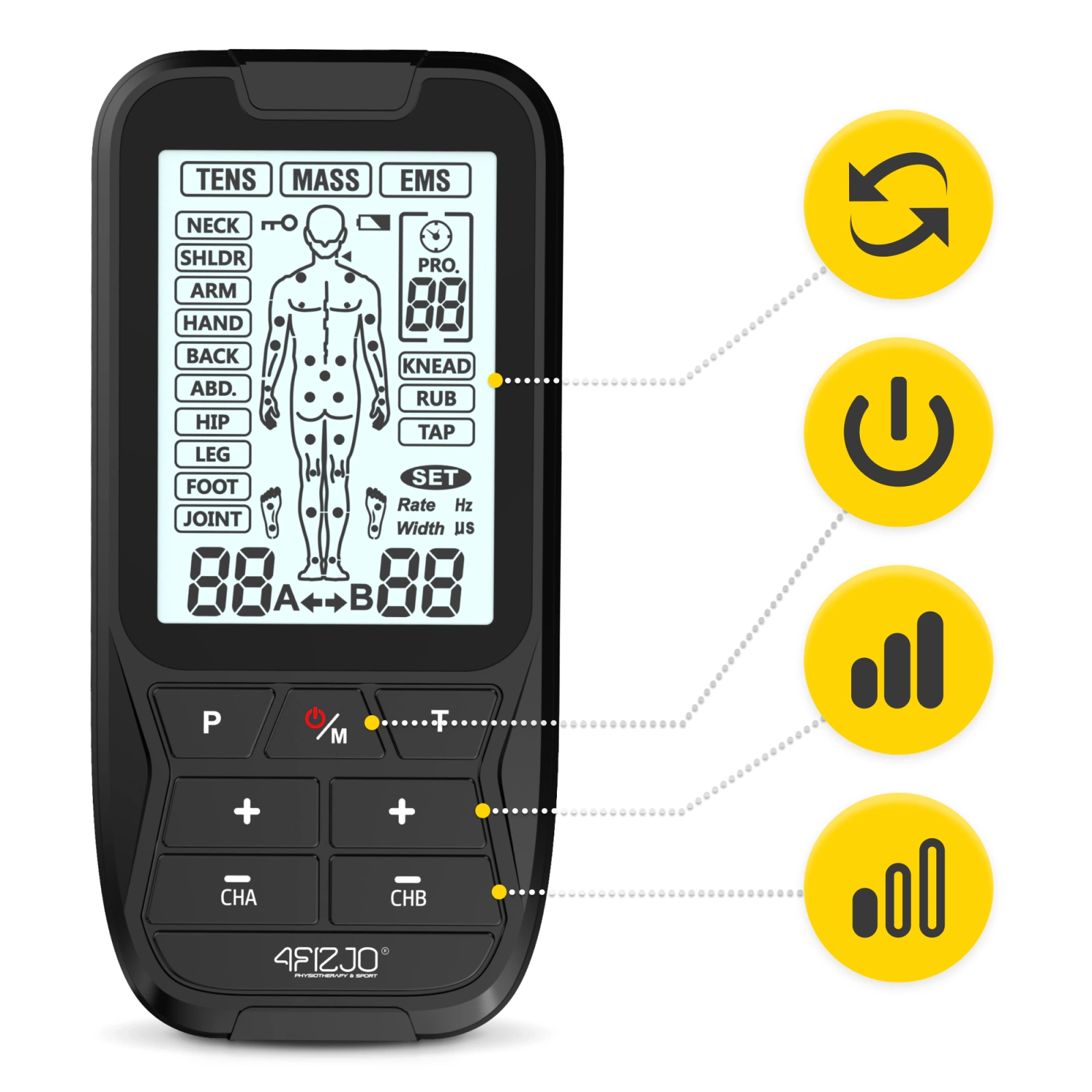 TENS și EMS Combo LITE 3-în-1 electrostimulator muscular 4FIZJO