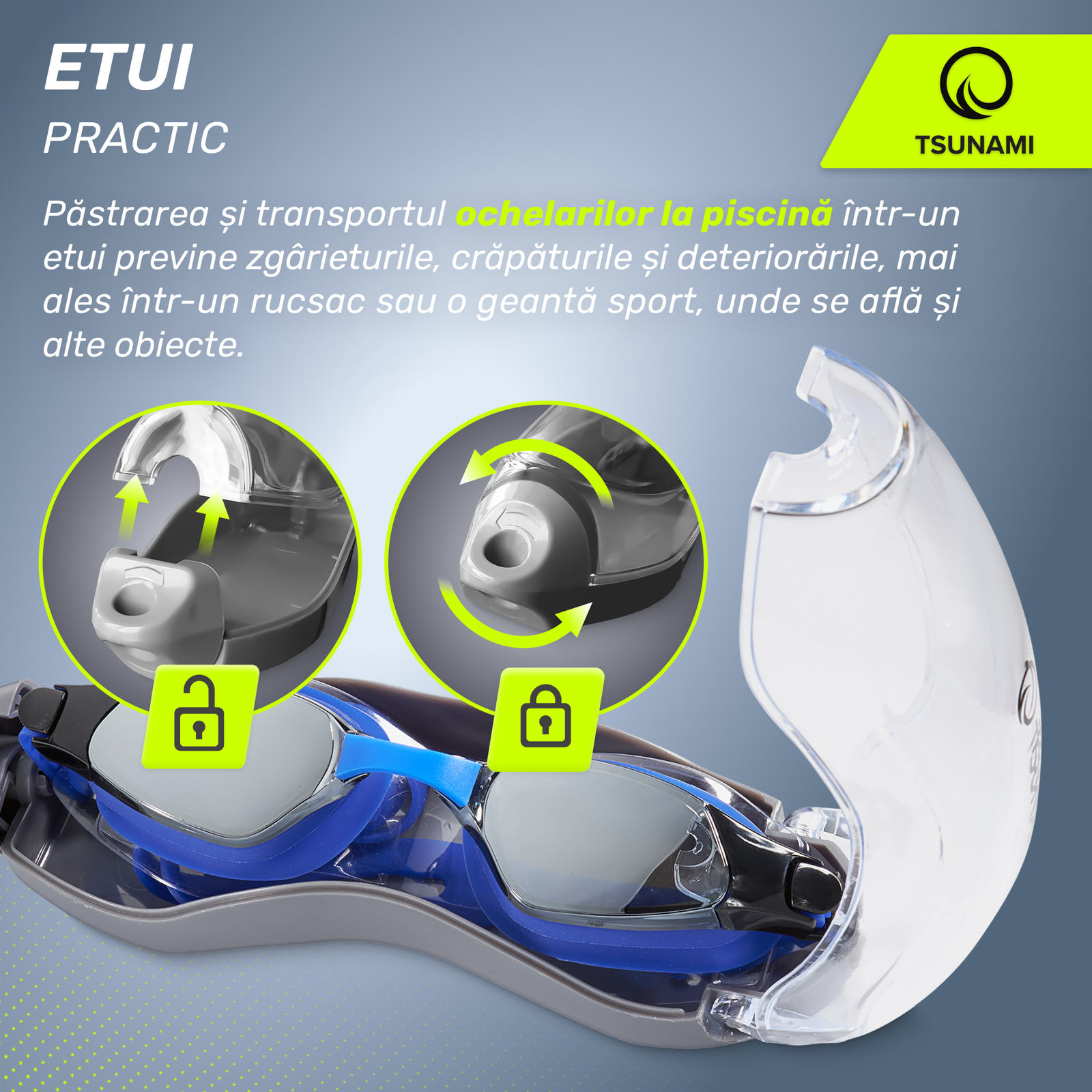 Ochelarii de înot TSUNAMI pentru piscină sunt alegerea ideală pentru înot atât în piscine, cât și în corpuri de apă deschise. Familiarizează-te cu parametrii produsului pentru a ajusta ochelarii la propriile nevoi.