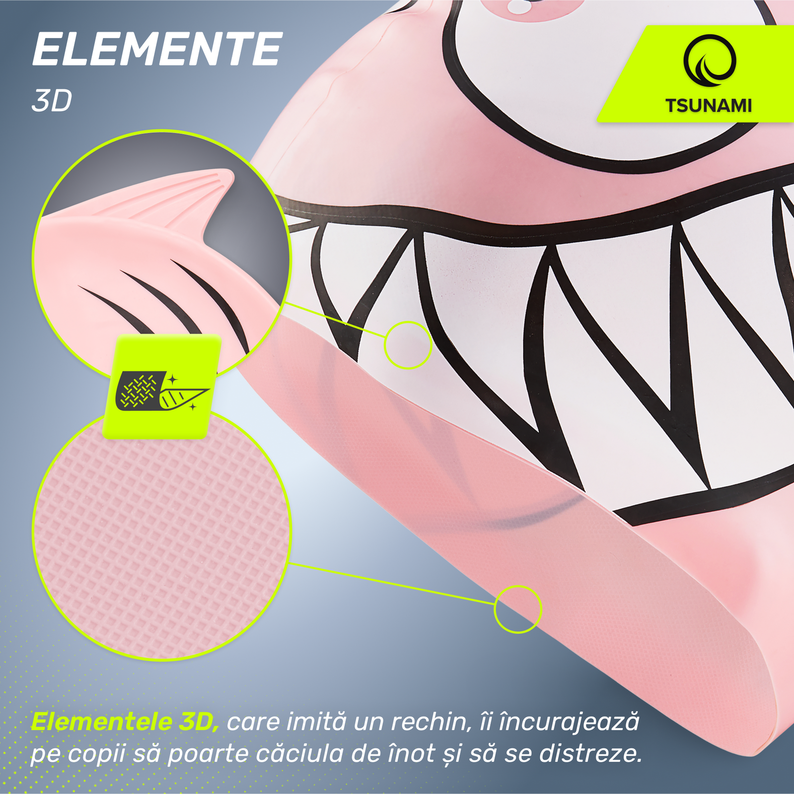Cască de înot din silicon pentru copii TSUNAMI cu elemente 3D