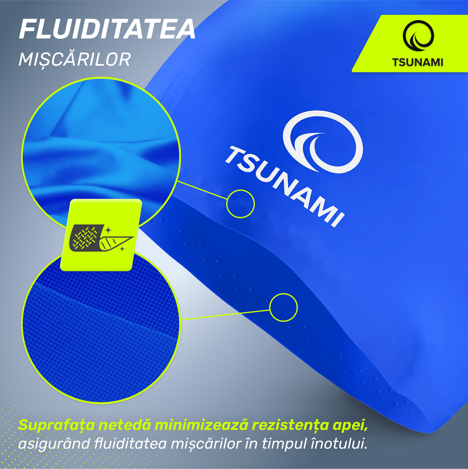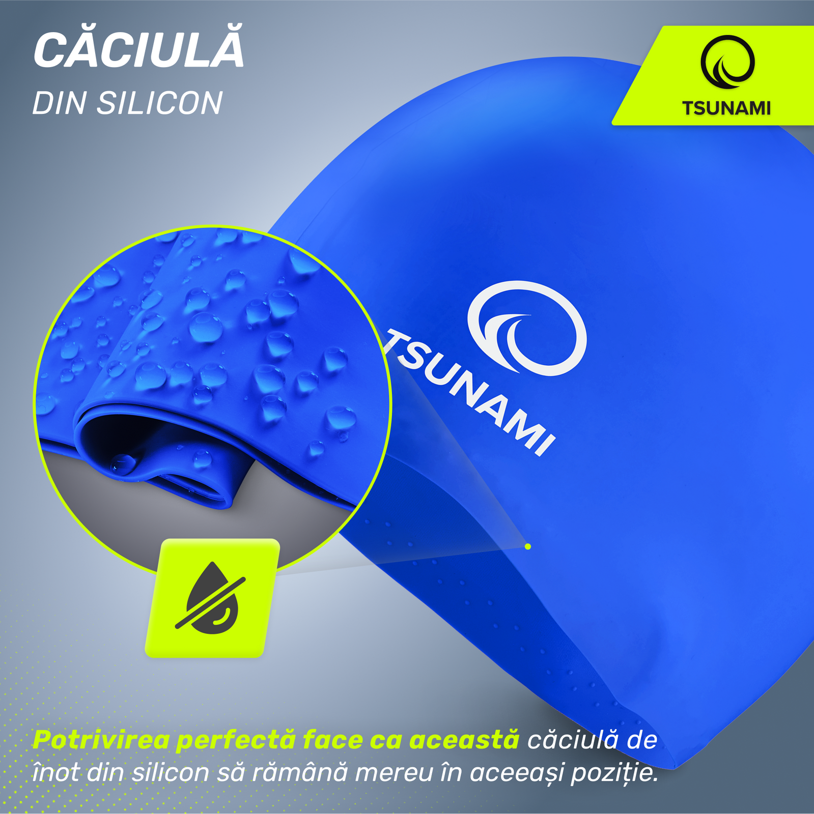 Cască de înot din silicon TSUNAMI pentru piscină unisex cu spațiu suplimentar pentru păr