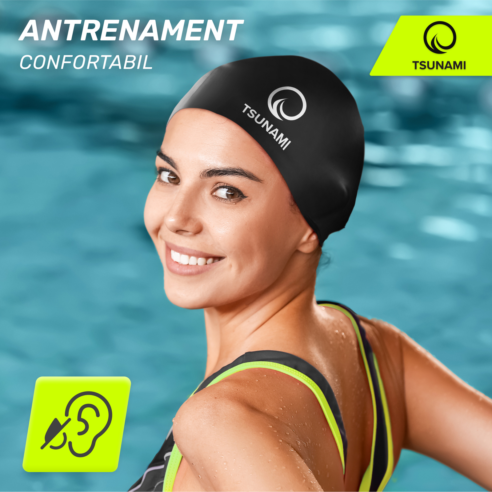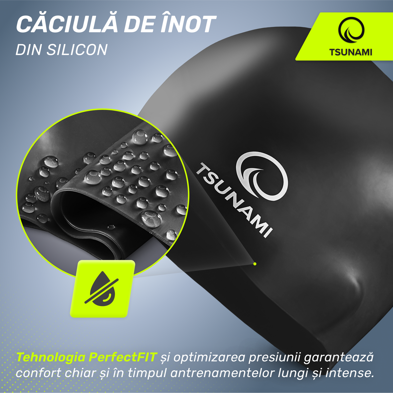 Cască de înot din silicon cu tehnologie PerfectFIT TSUNAMI