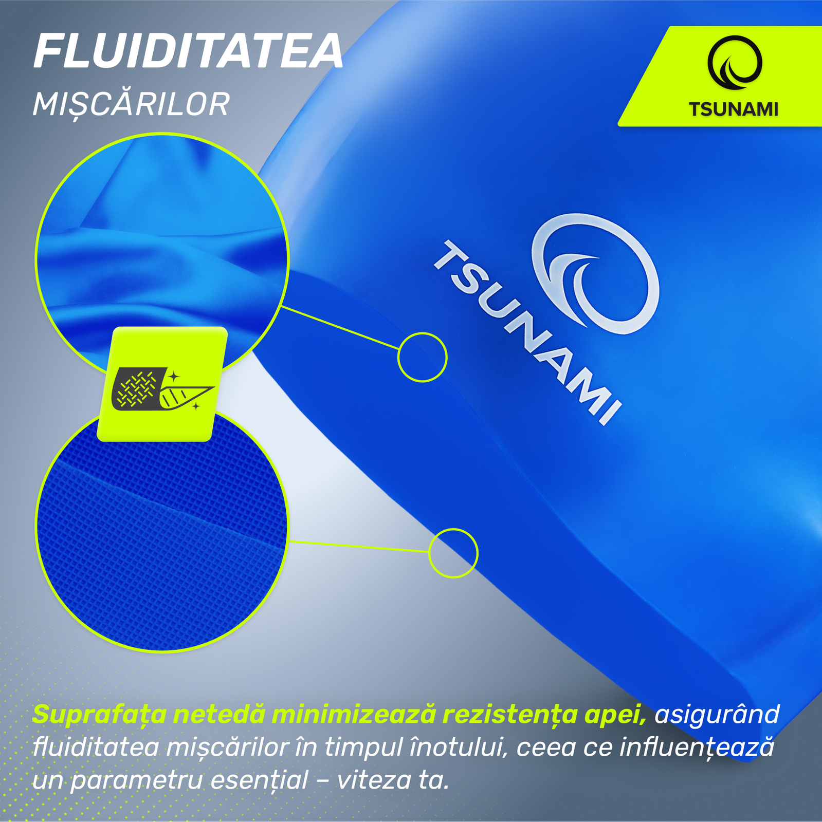✅ Suprafața netedă minimizează rezistența la apă, asigurând o mișcare lină atunci când înoți, ceea ce se traduce într-un parametru cheie - viteză.