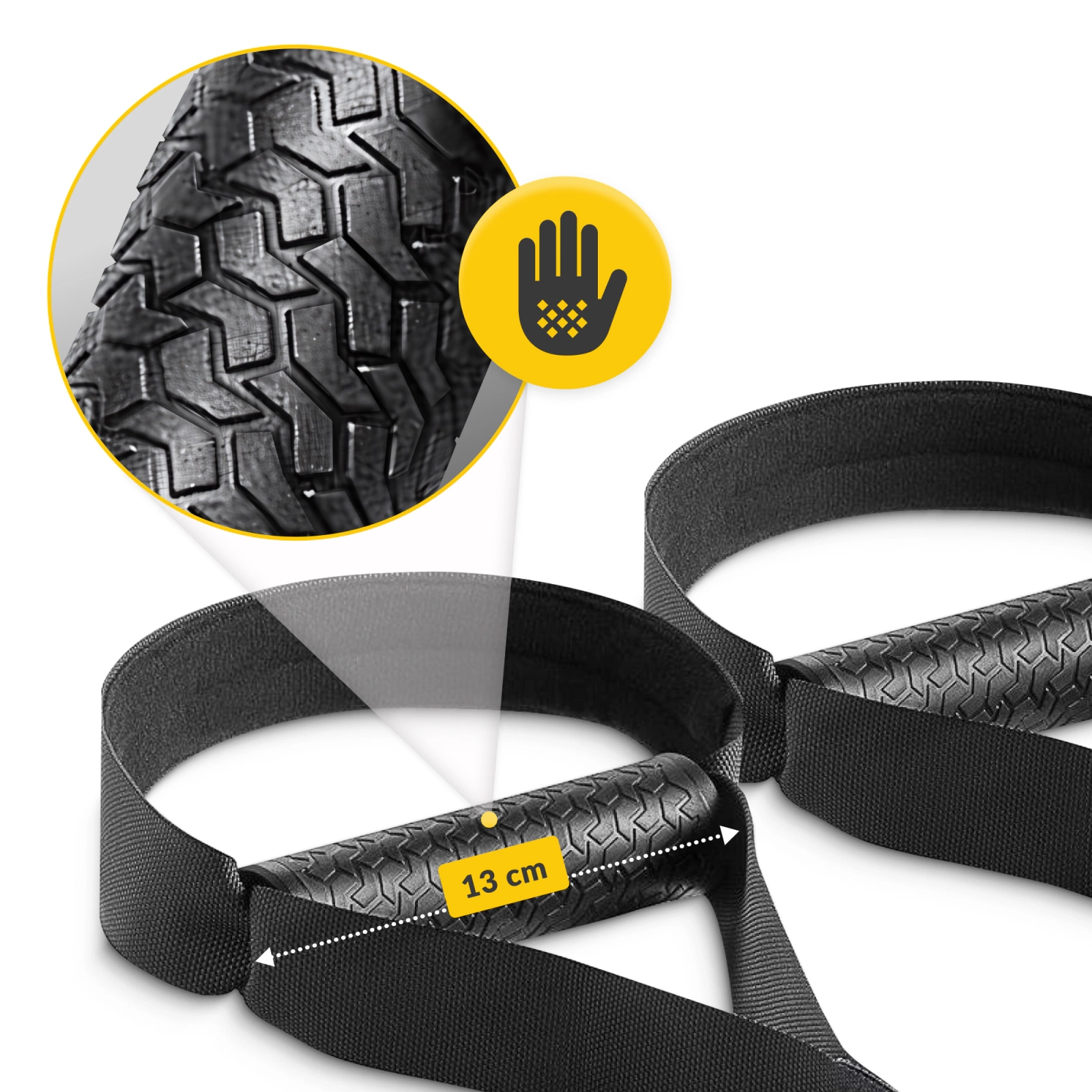 ✅ Benzile de exercițiu tip TRX au mânere antiderapante din cauciuc, care asigură o prindere sigură și confortabilă.