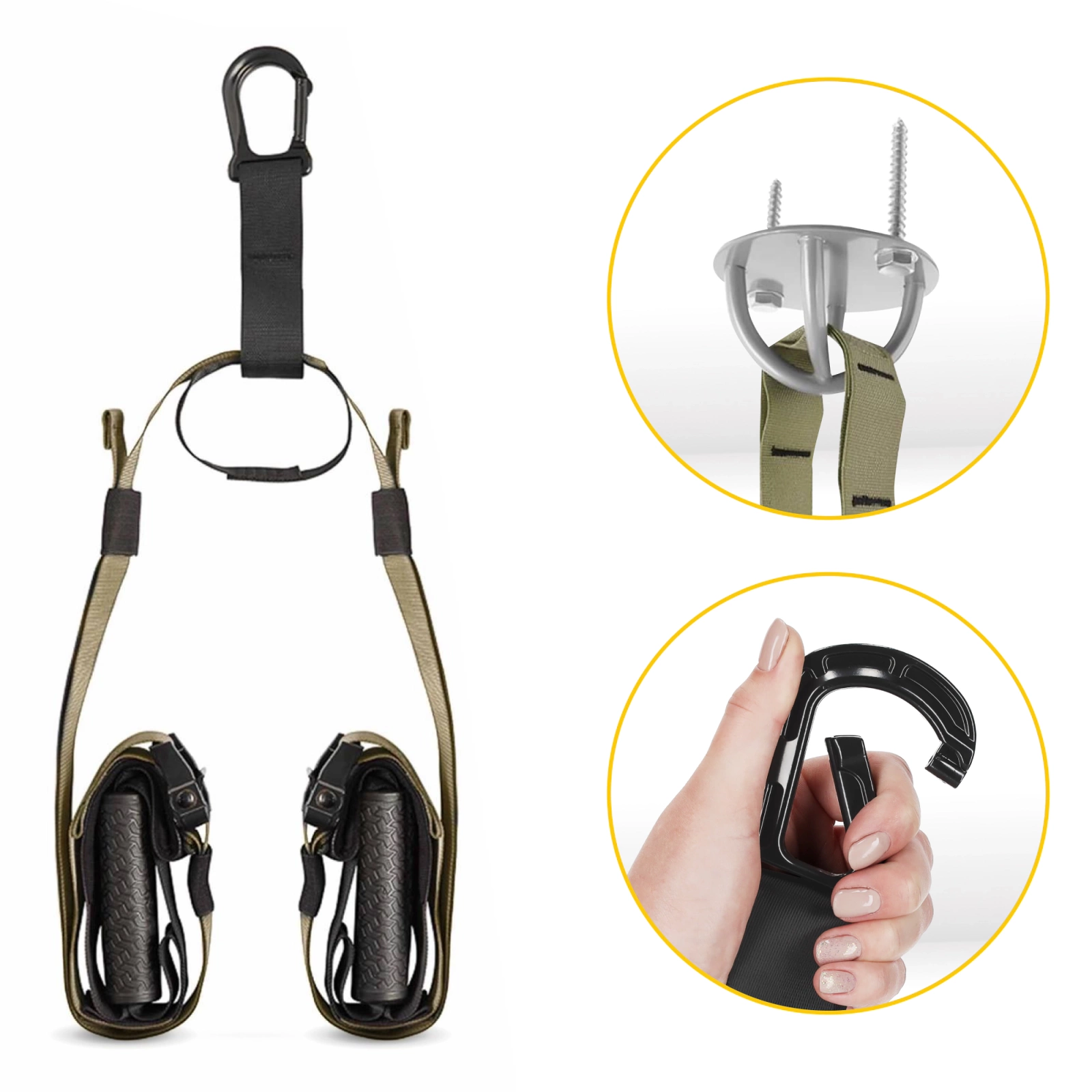 ✔️ În set: bandă cu carabinieră, 2 x benzi cu mâner, suport pentru ușă, sac pentru transport