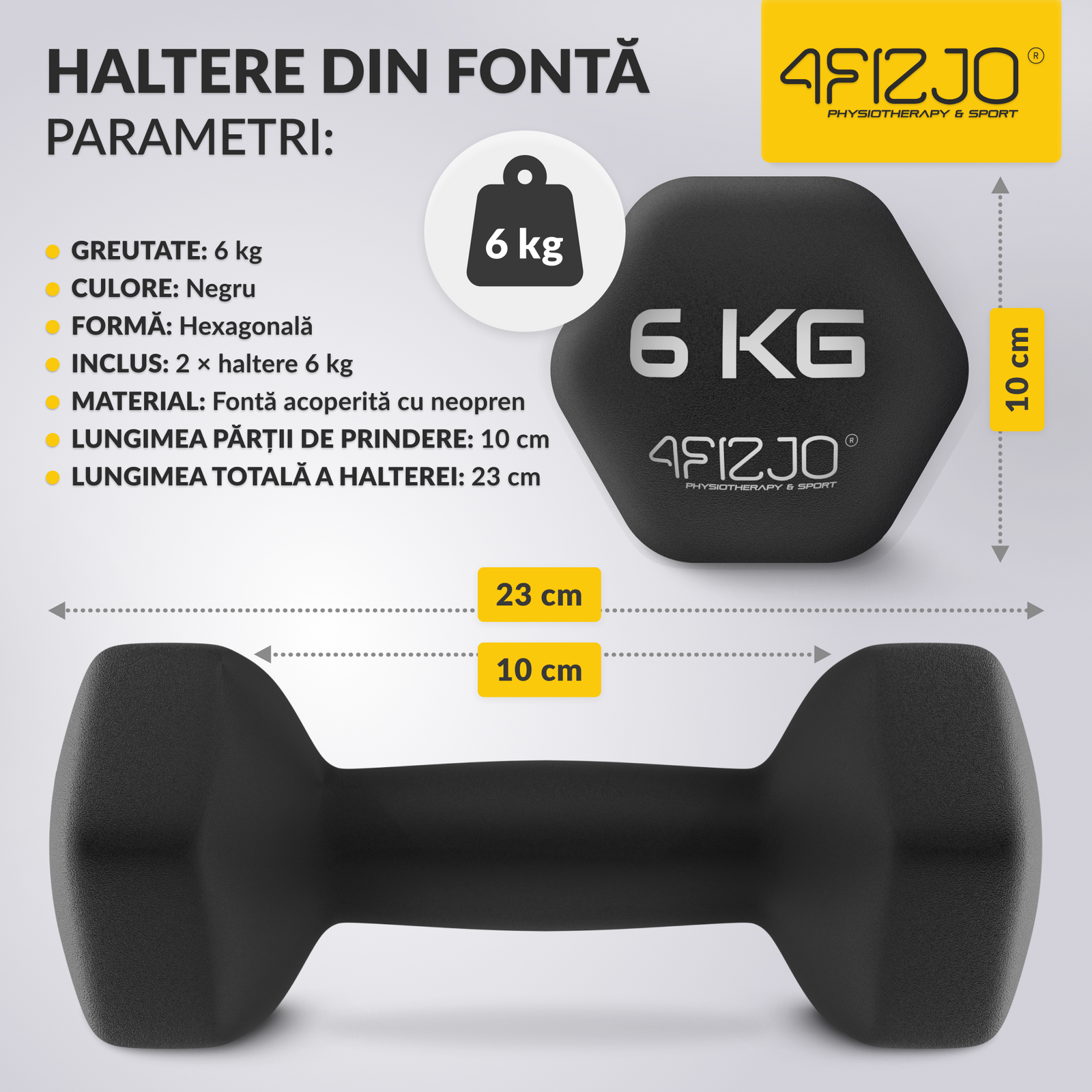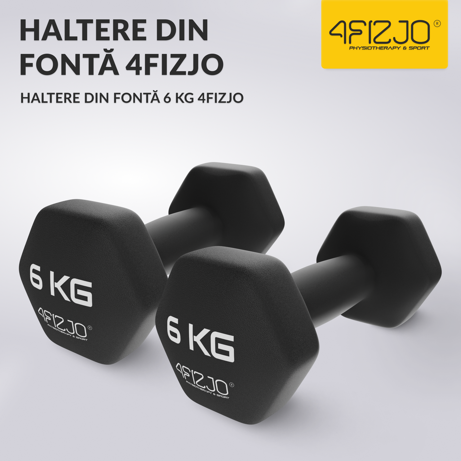 Gantere din fontă pentru exerciții de forță 4FIZJO 2 × 6 kg