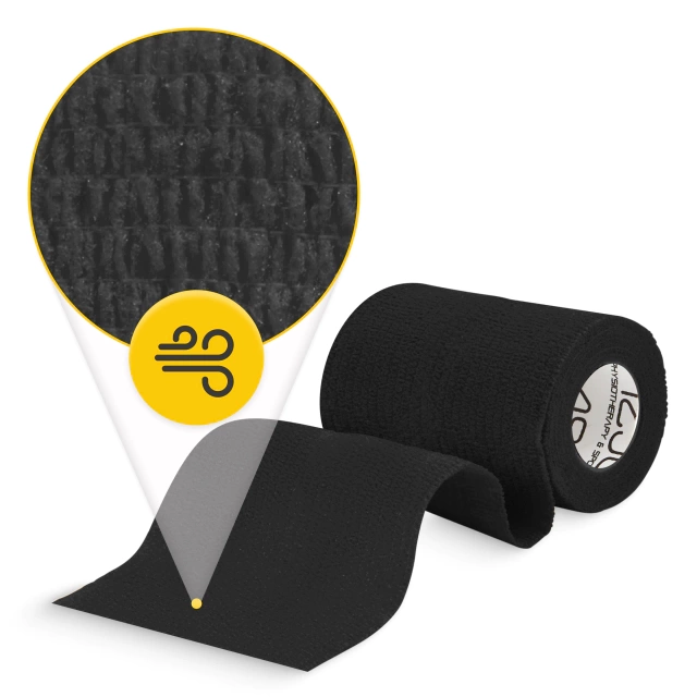 Atunci când alegi un bandaj autoadeziv, pariază pe siguranța utilizării și pe confortul purtării. Acest lucru este posibil datorita materialului din care este fabricat. Acest bandaj fiabil este fabricat dintr-o țesătura specială nețesută cu o structură cu un singur strat care creează un efect de a doua piele. Bandajul se distinge prin proprietățile elastice ale țesăturii, care este, de asemenea, permeabilă la aer. Acest lucru permite pielii să respire liber, iar apa și transpirația nu se acumulează sub bandaj. În plus, produsul este hipoalergenic. Nu este sensibilizant și poate fi utilizat de persoanele care suferă de alergii.