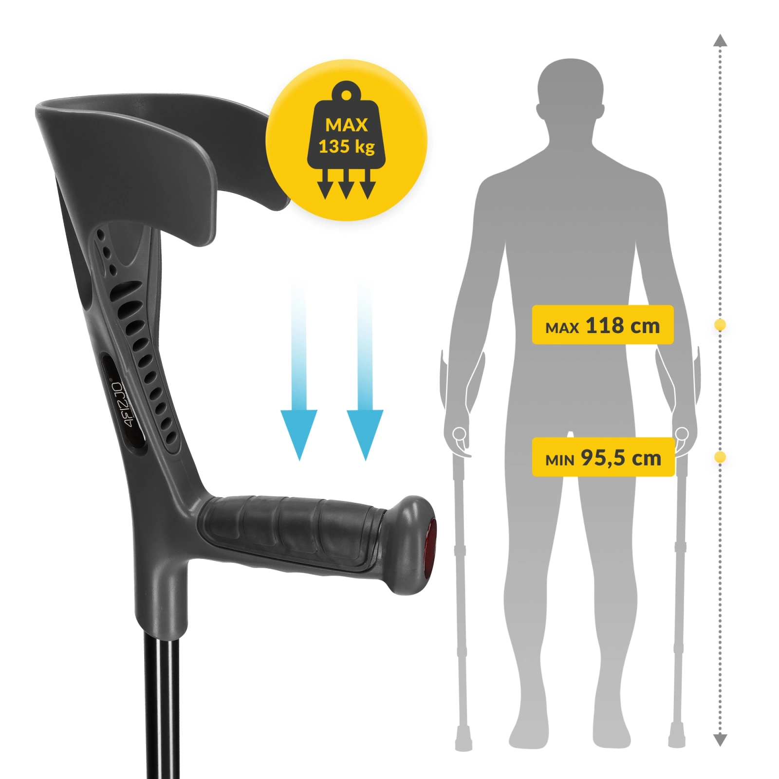 Cârje ortopedice MED 4FIZJO pentru cot, reglabile, negre