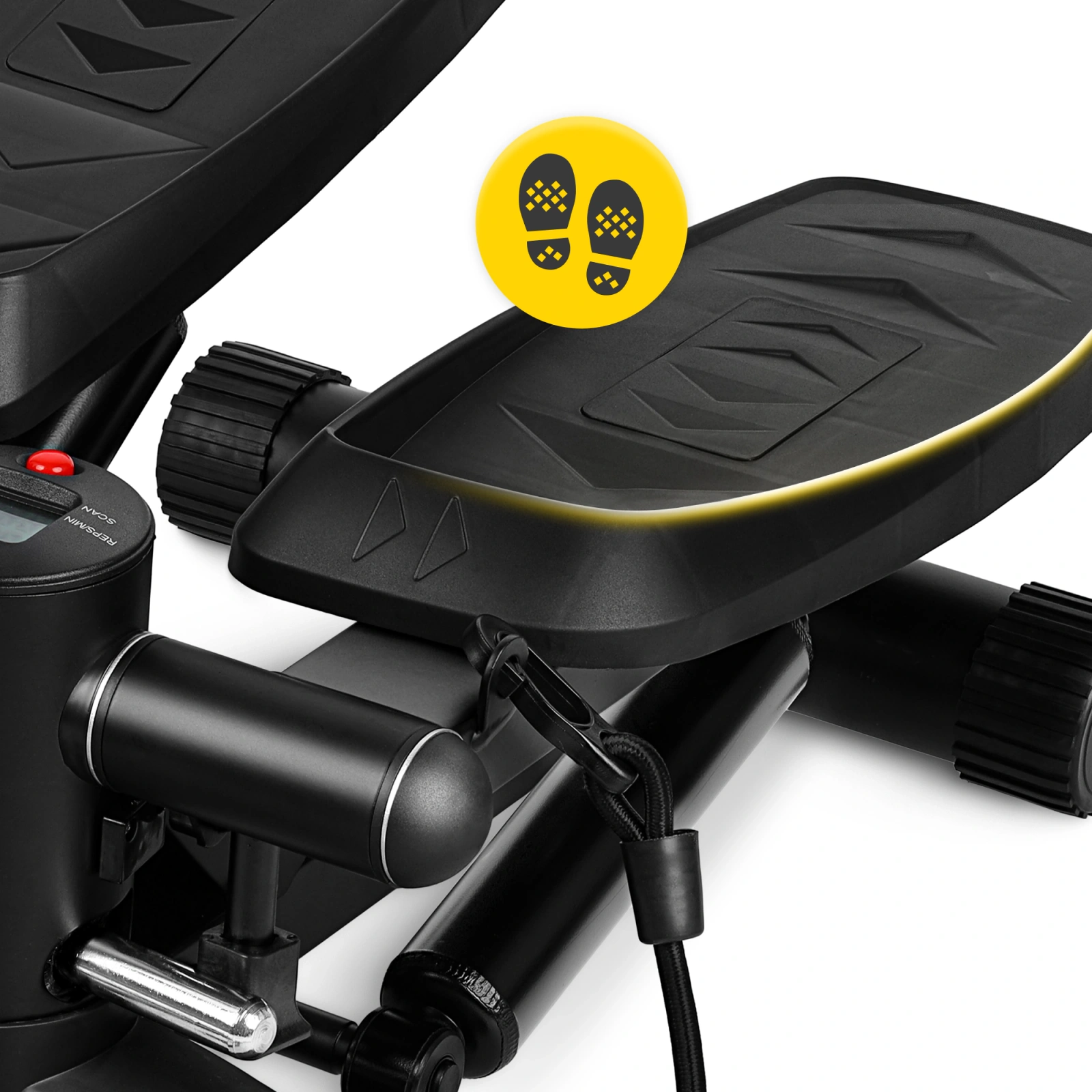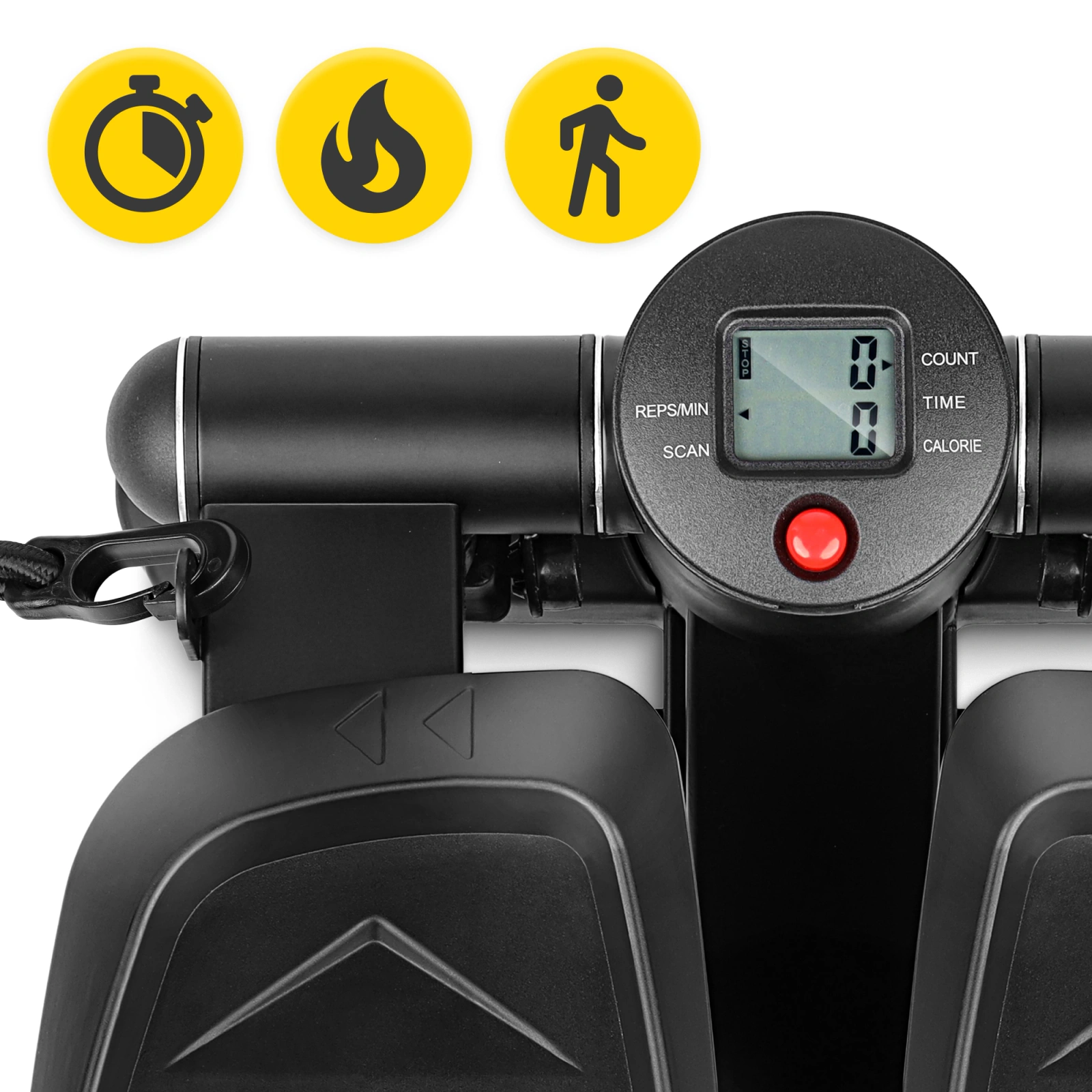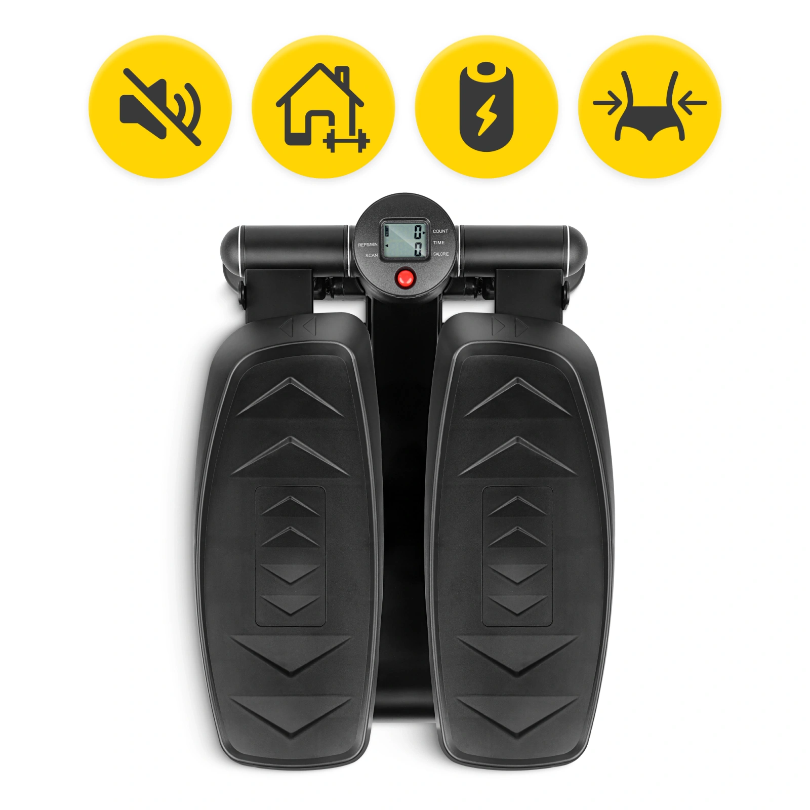 Indiferent care este obiectivul tău sportiv, îl vei atinge mult mai repede dacă vei monitoriza parametrii în timp ce te antrenezi pe stepper. Acest lucru este extrem de ușor datorită contorului, care îți oferă acces gratuit la acestea. Pe ecran vei vedea: timpul de antrenament, distanța parcursă, numărul de pași, numărul total de pași și caloriile arse. Iar atunci când nu dorești să fii distras de controlul ecranului, poți activa opțiunea de scanare, care va alterna automat între toate calculele disponibile. Și acesta este exact modul în care te antrenezi eficient și confortabil.