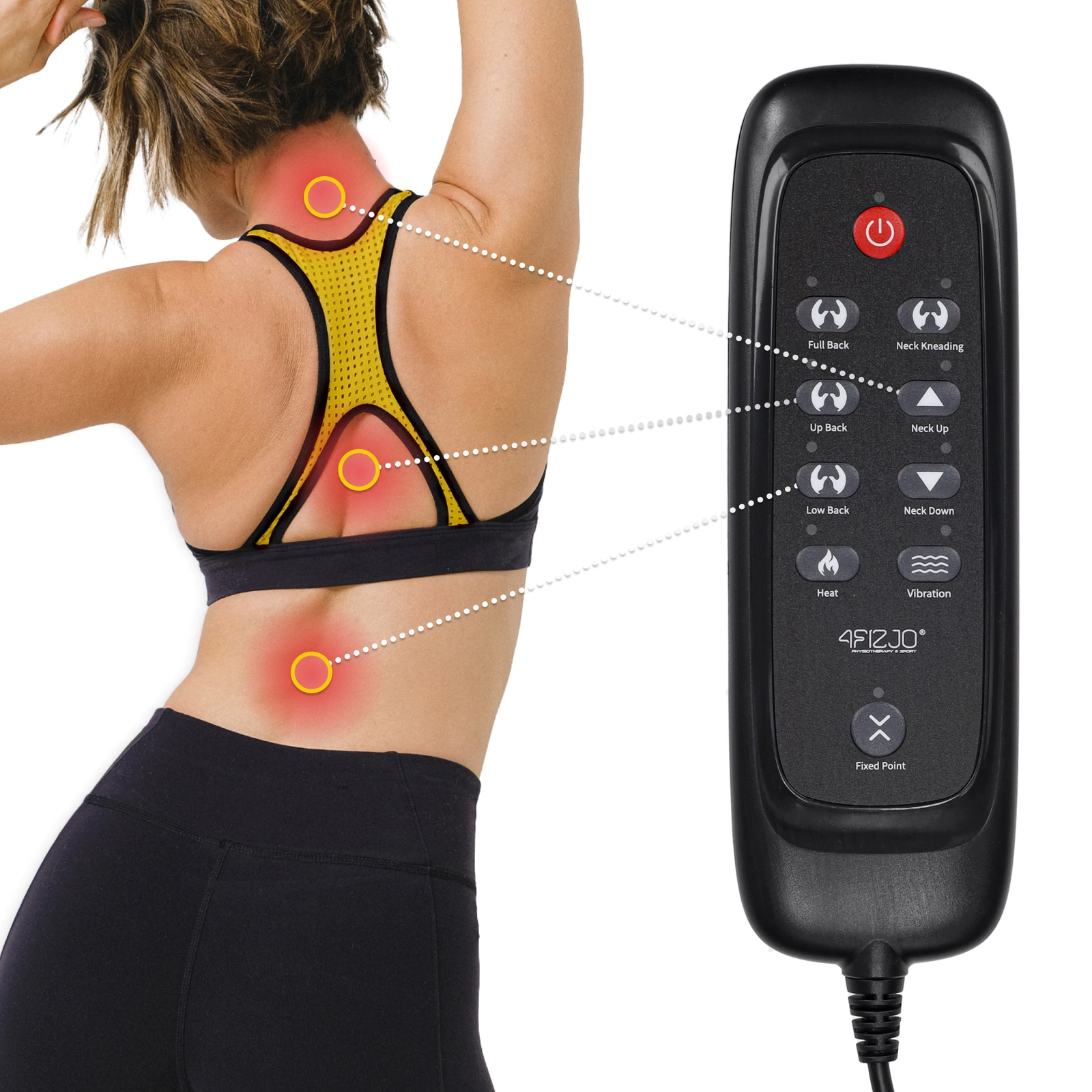 Cu covorul de masaj shiatsu 4FIZJO te vei simți ca într-un salon de masaj profesionist. Datorită diferitelor funcții, poți alege tipul de masaj perfect pentru tine. Cele 12 capete de masaj pentru stimularea părții superioare și inferioare a spatelui sau funcția de încălzire oferă o experiență de neuitat. Operarea ușoară și intuitivă este asigurată de o telecomandă cu zone de masaj din care poți alege: