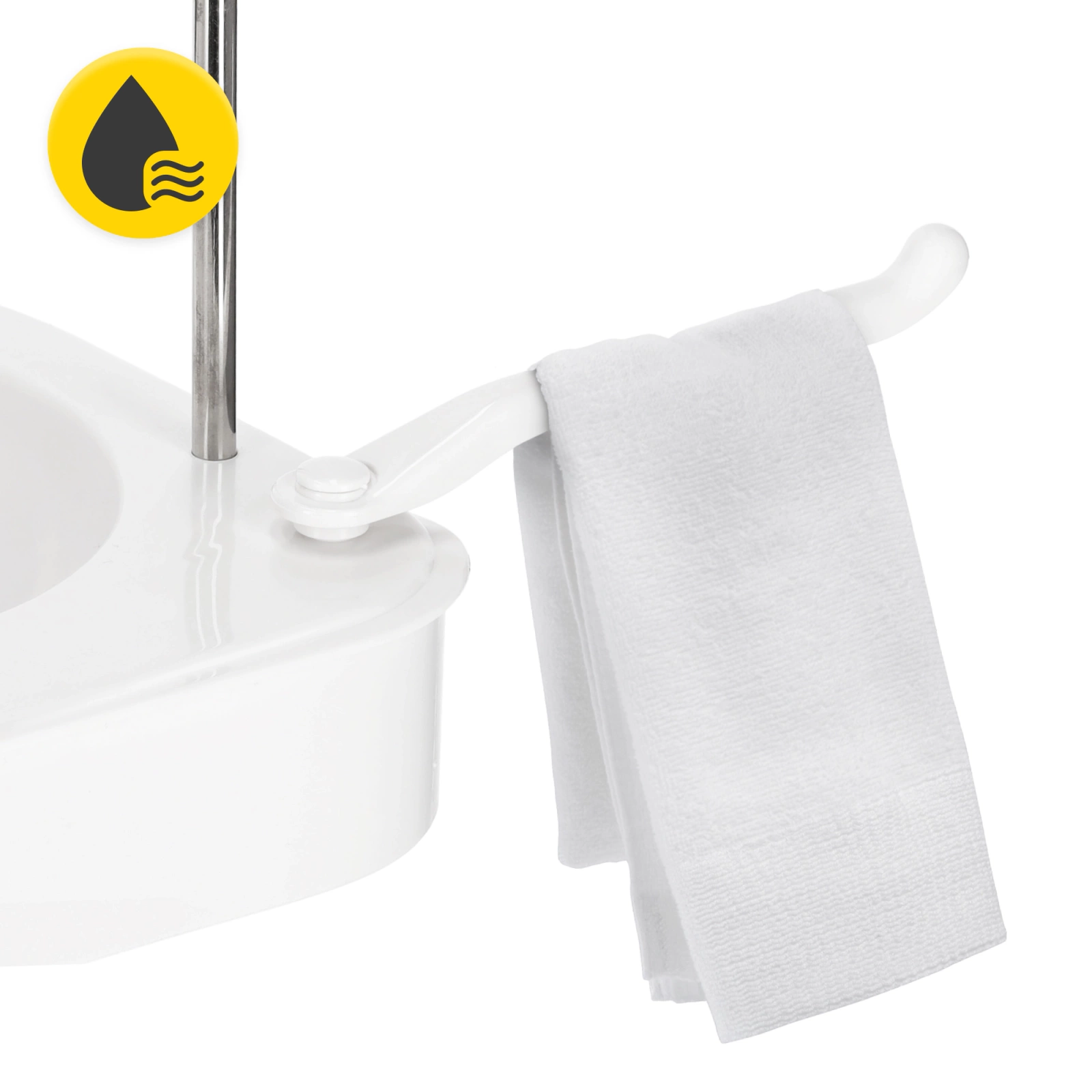 ✅ Suportul pentru prosoape maximizează confortul utilizării chiuvetei – veți avea întotdeauna la îndemână obiectele esențiale. Acesta poate fi folosit și ca suport pentru hârtie igienică.