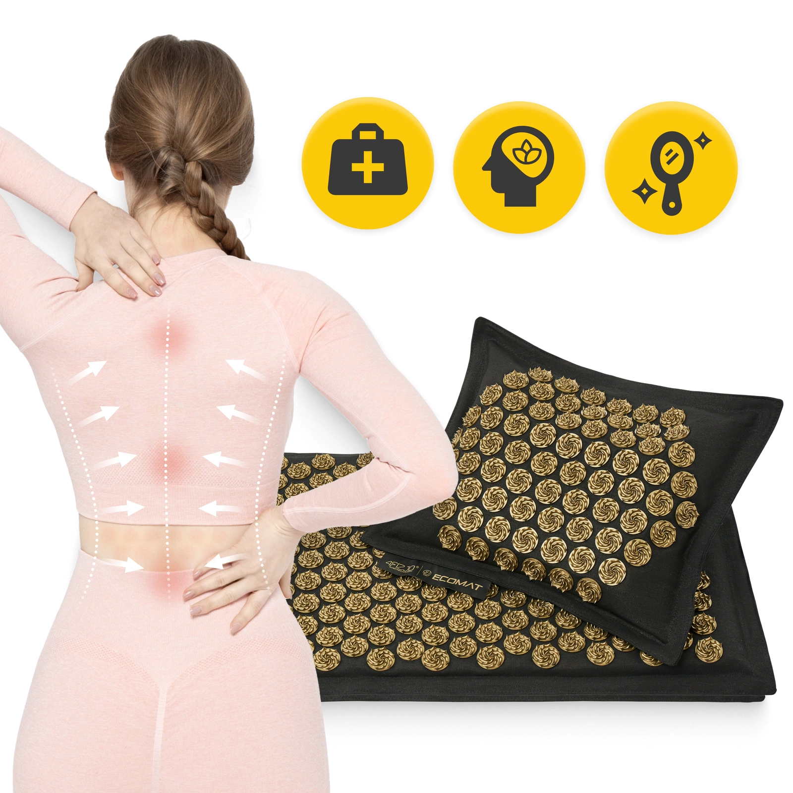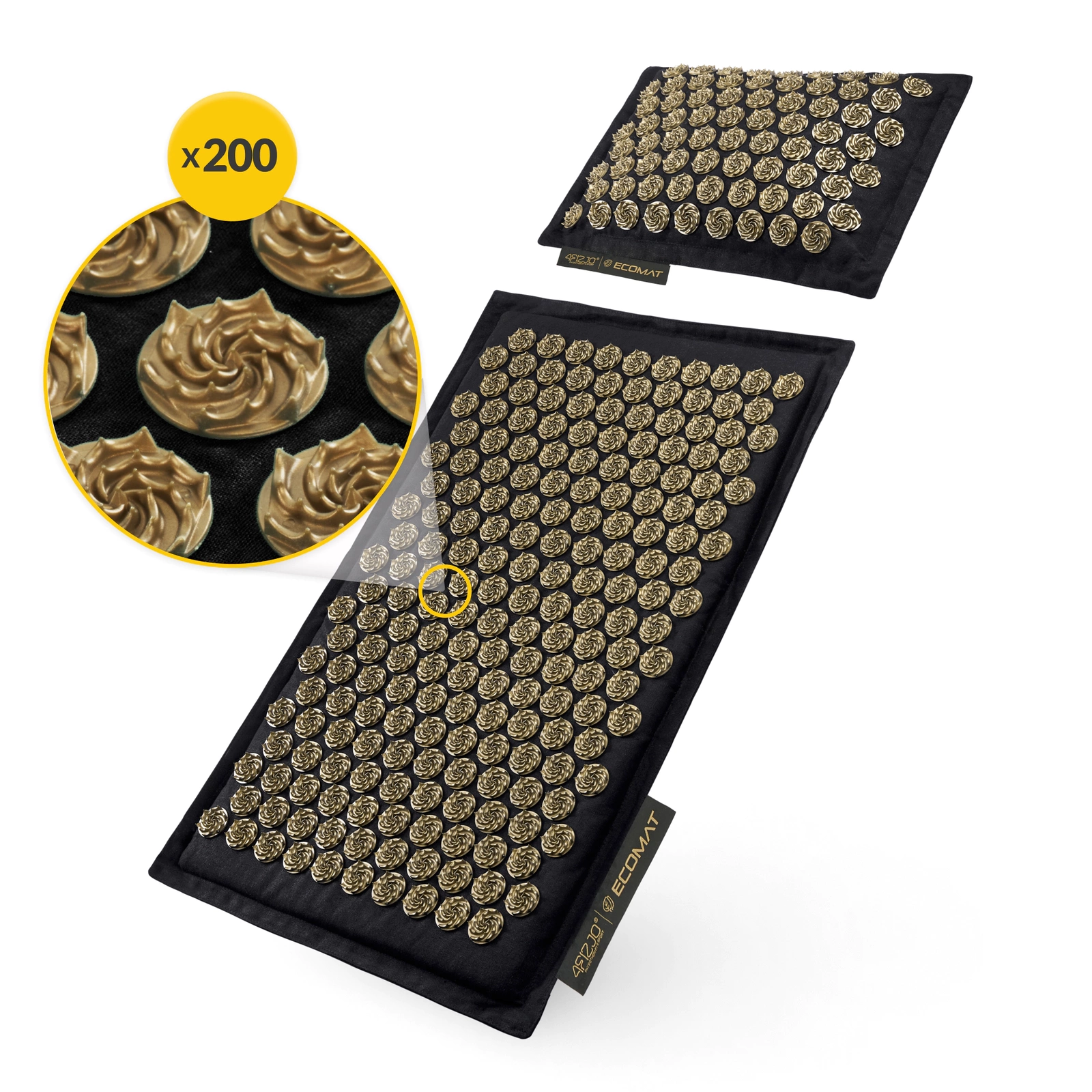 Saltea de acupunctură cu pernă ECO 4FIZJO - Negru/Auriu