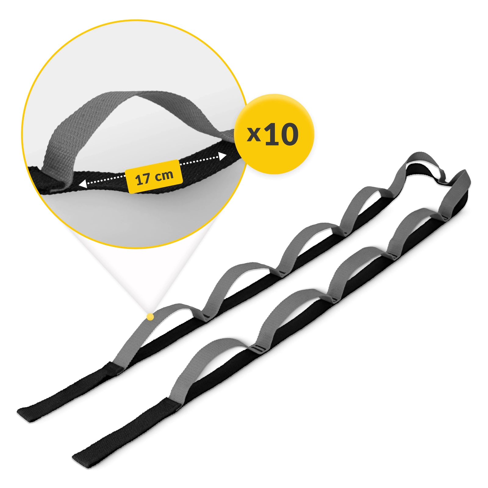 ✅ Cureaua elastică este formată din 10 bucle care îți permit să mărești treptat gama de mișcări.