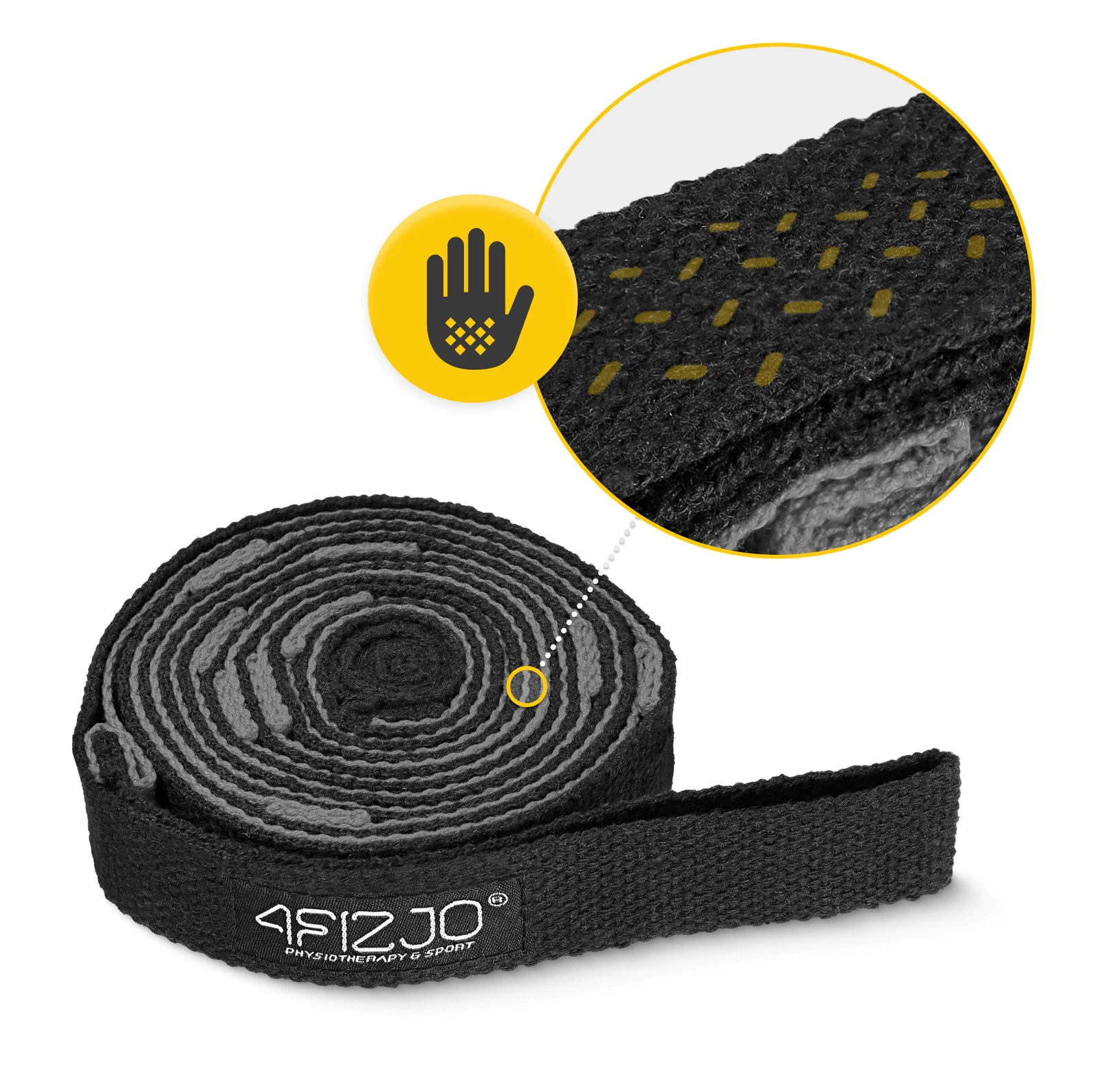 Centura de întindere 4FIZJO este un accesoriu practic pentru yoghini și nu numai. Aceasta va permite de efectuat o varietate de antrenamente. Întinderea cu acest tip de echipament te va întări și îți va face mușchii mai flexibili. În plus, banda de yoga poate fi de ajutor în minimizarea tensiunii în zona umerilor și a pieptului. Poți utiliza banda de exerciții 4FIZJO pentru: