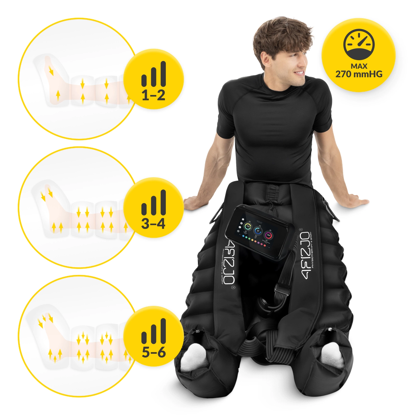 ✔️ 6 programe de masaj și posibilitatea de a seta timpul de tratament și nivelul de presiune vă permit să adaptați masajul prin compresie la propriile nevoi.