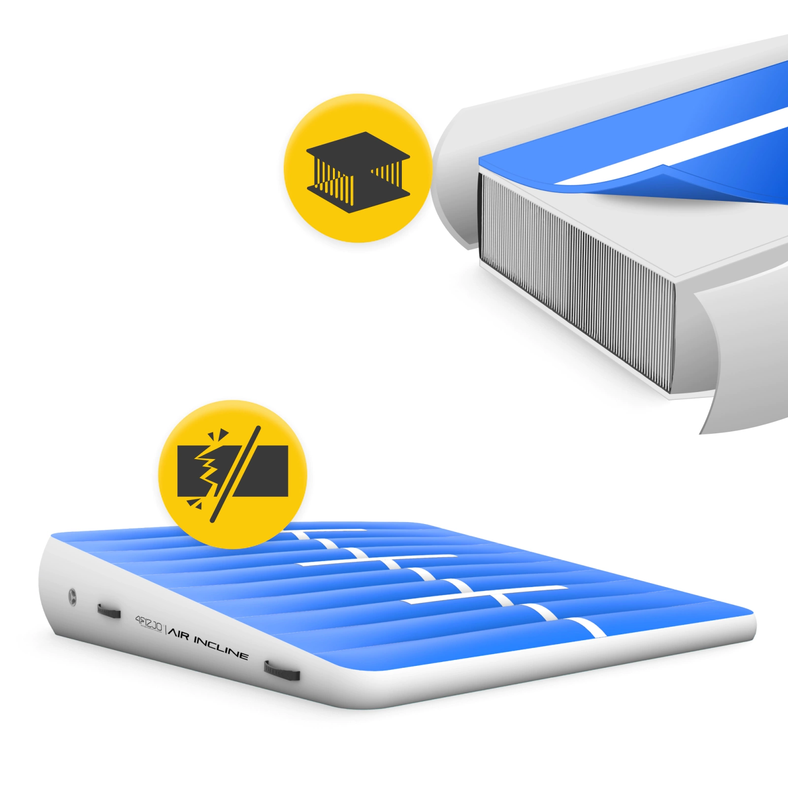 Înclinarea gonflabilă de gimnastică AIR INCLINE este echipamentul ideal pentru oricine dorește să-și dezvolte abilitățile în acrobație. Concepută având în vedere siguranța și confortul, este perfectă pentru sărituri, învățarea tumbling-ului sau alte exerciții de gimnastică de bază.