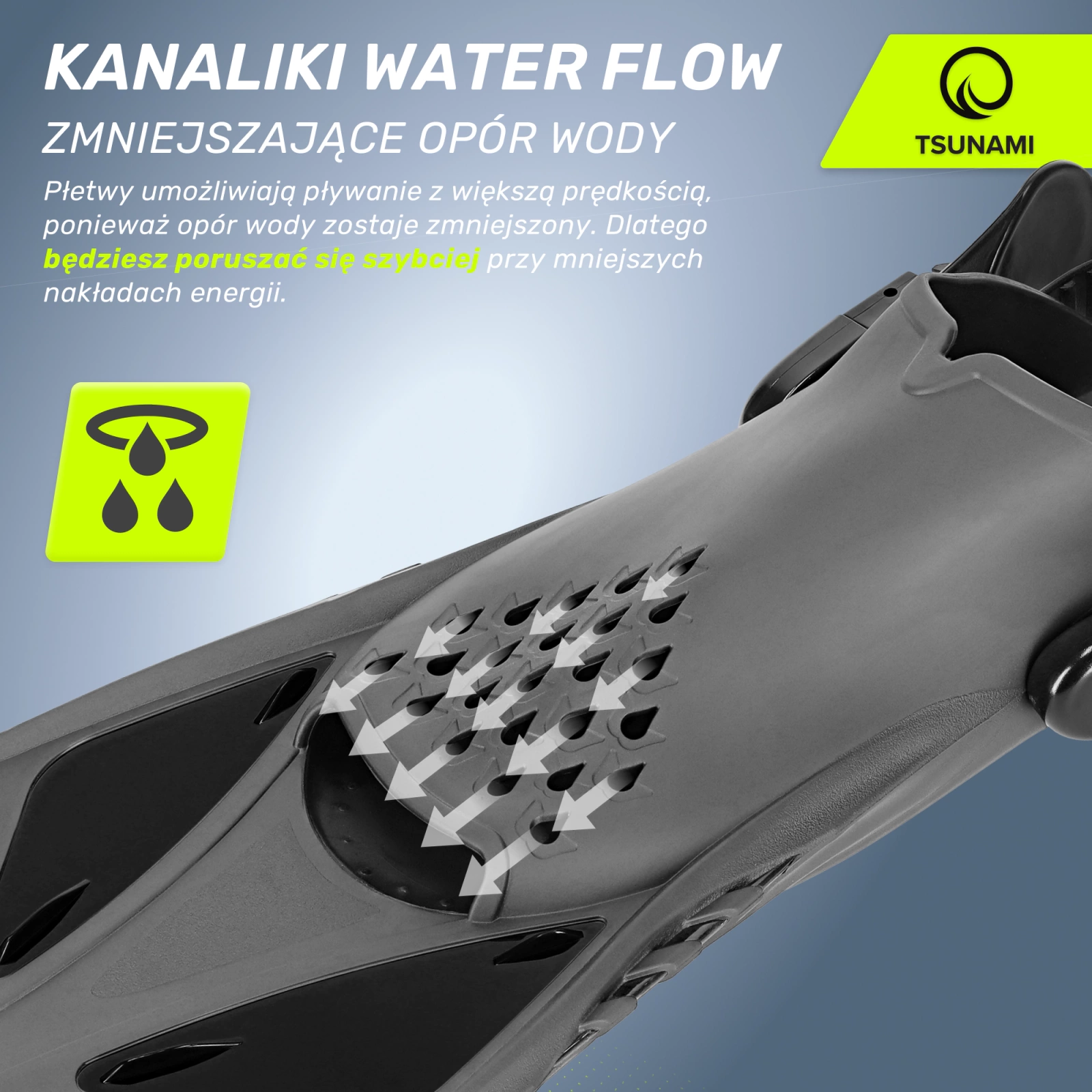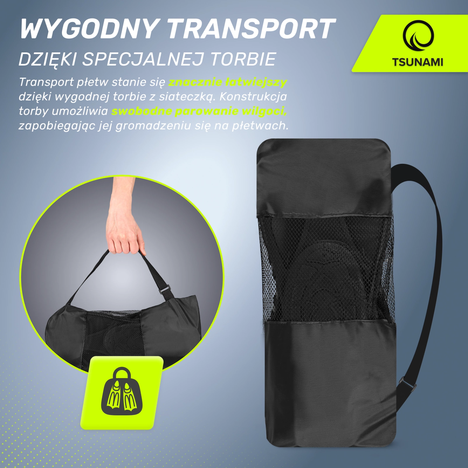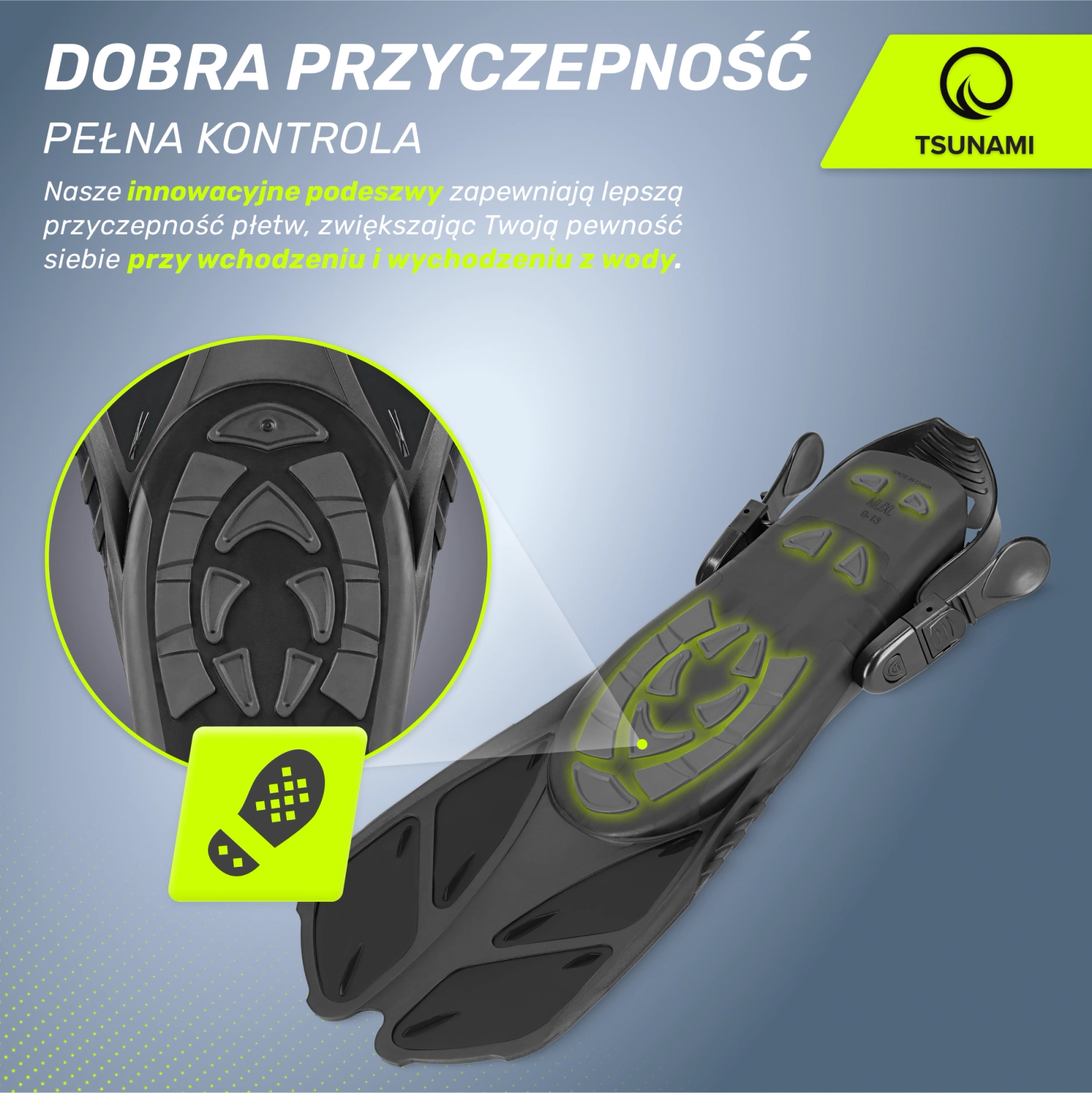 Labele reglabile TSUNAMI sunt alegerea ideală atunci când vrei să faci scufundări recreative sau să practici snorkeling. Suprafața mare a labelor le face perfecte pentru a fi utilizate în ape deschise și naturale, precum lacuri sau mări, atât în Polonia, cât și în țările calde. Labele de scufundare TSUNAMI îți vor permite să te miști rapid în apă sau să ieși la suprafață. Cu ele la picioare, te vei simți confortabil și, cel mai important, în siguranță.