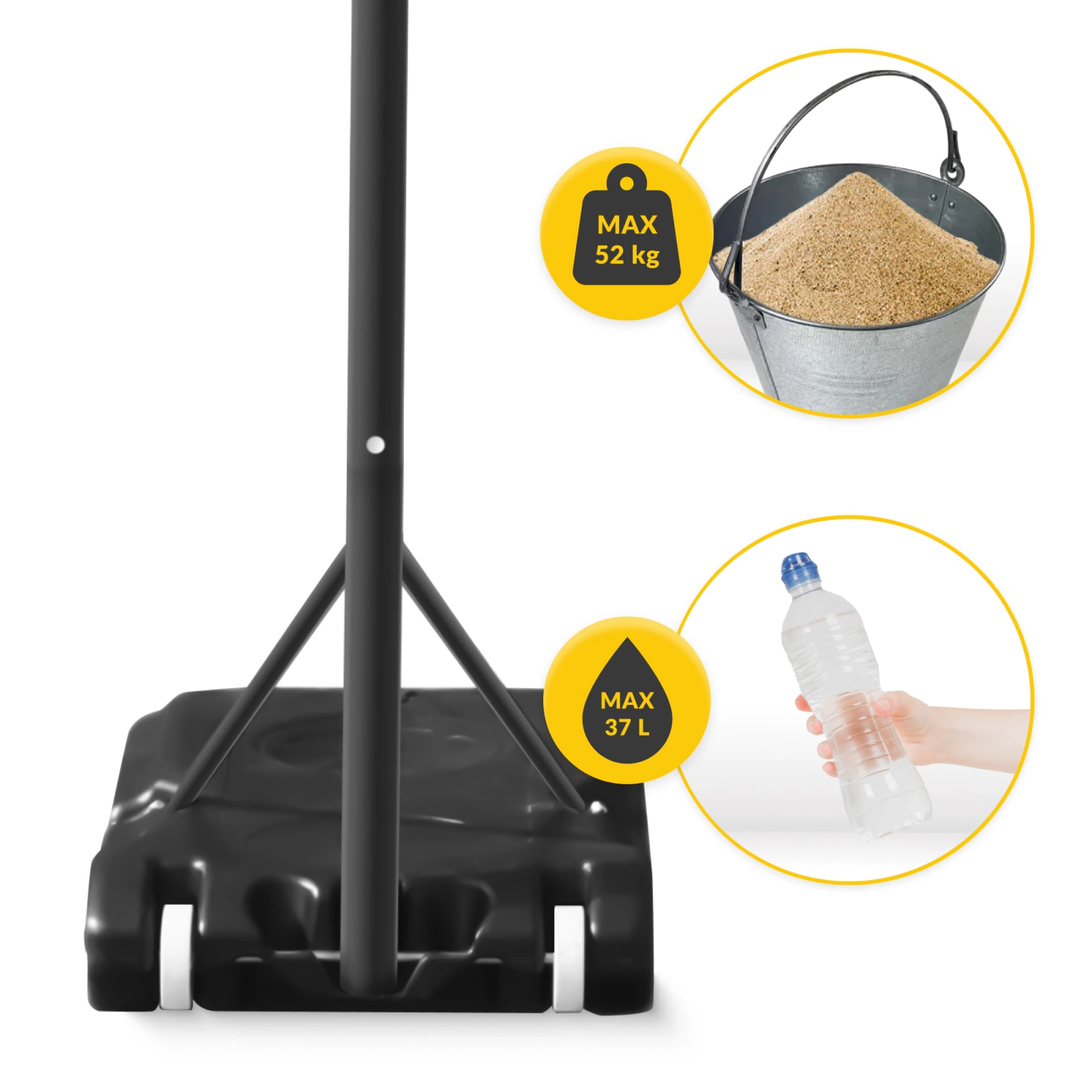 ✔️ Capacitatea bazei: 37 l de apă sau 52 kg de nisip