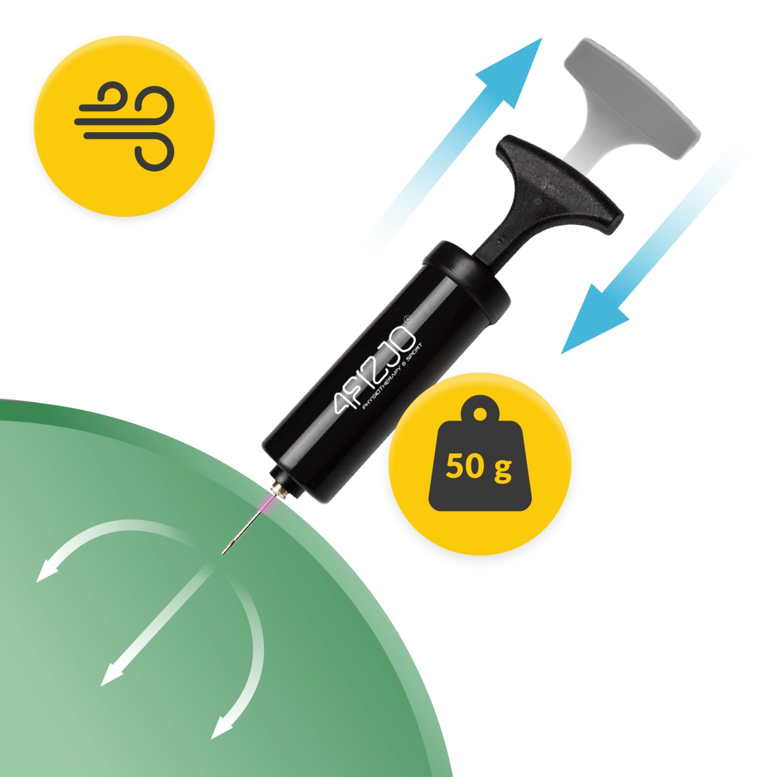 Pentru a umfla mingea de gimnastică, utilizați pompa de mână inclusă în set. Urmați pașii de mai jos pentru a umfla corect mingea: