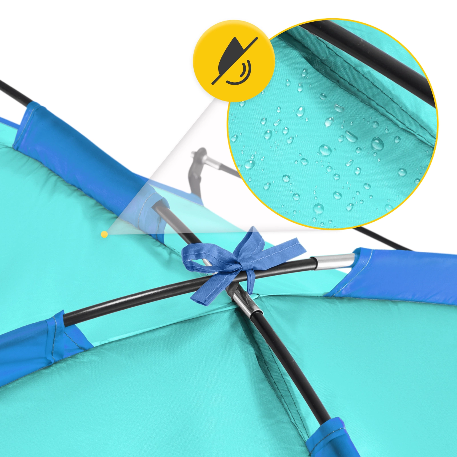 ✅ Cortul de plajă a fost fabricat din poliester durabil. Materialul nu absoarbe umezeala și se usucă rapid.