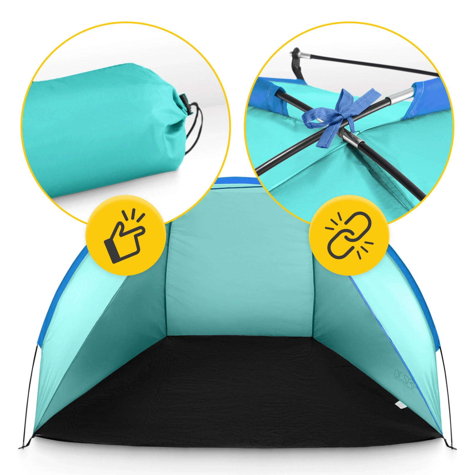 ✅ Cortul de plajă extensibil este o protecție eficientă împotriva soarelui, vântului și nisipului.