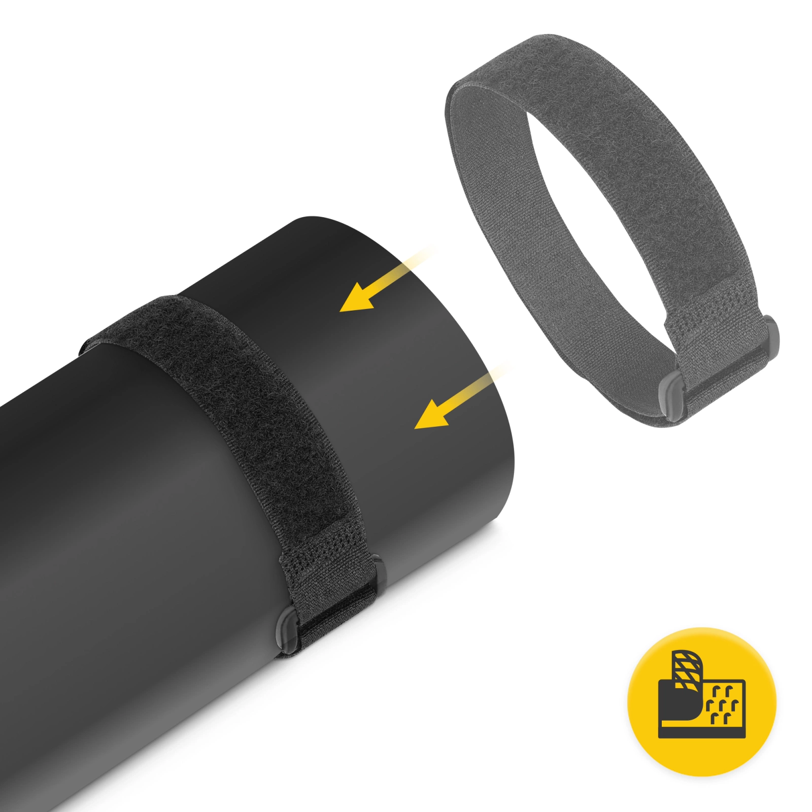▶️ Curelele incluse în set stabilizează protecția de bară, prevenind alunecarea acesteia pe bara de haltere.