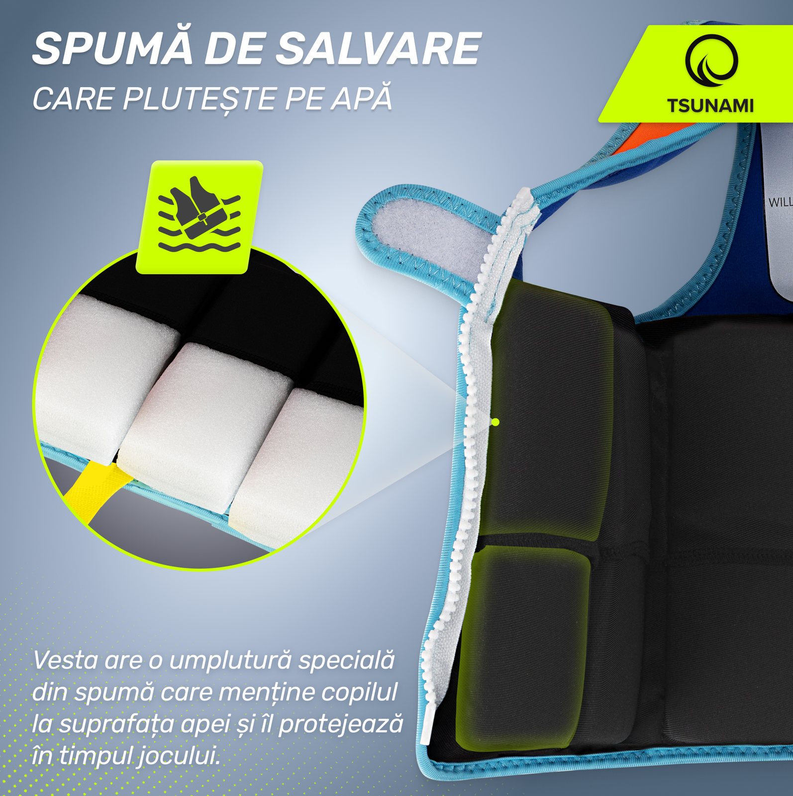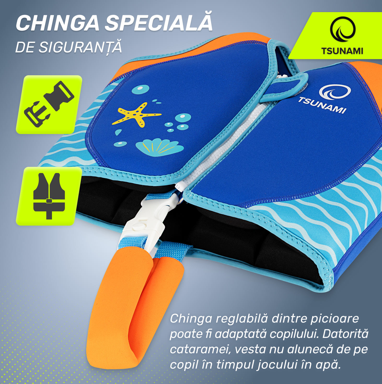 Fie că se află în piscina din grădină, se joacă la lac sau în vacanță la mare, vesta de flotabilitate TSUNAMI vă va ajuta copilul să se simtă încrezător și în siguranță în apă.