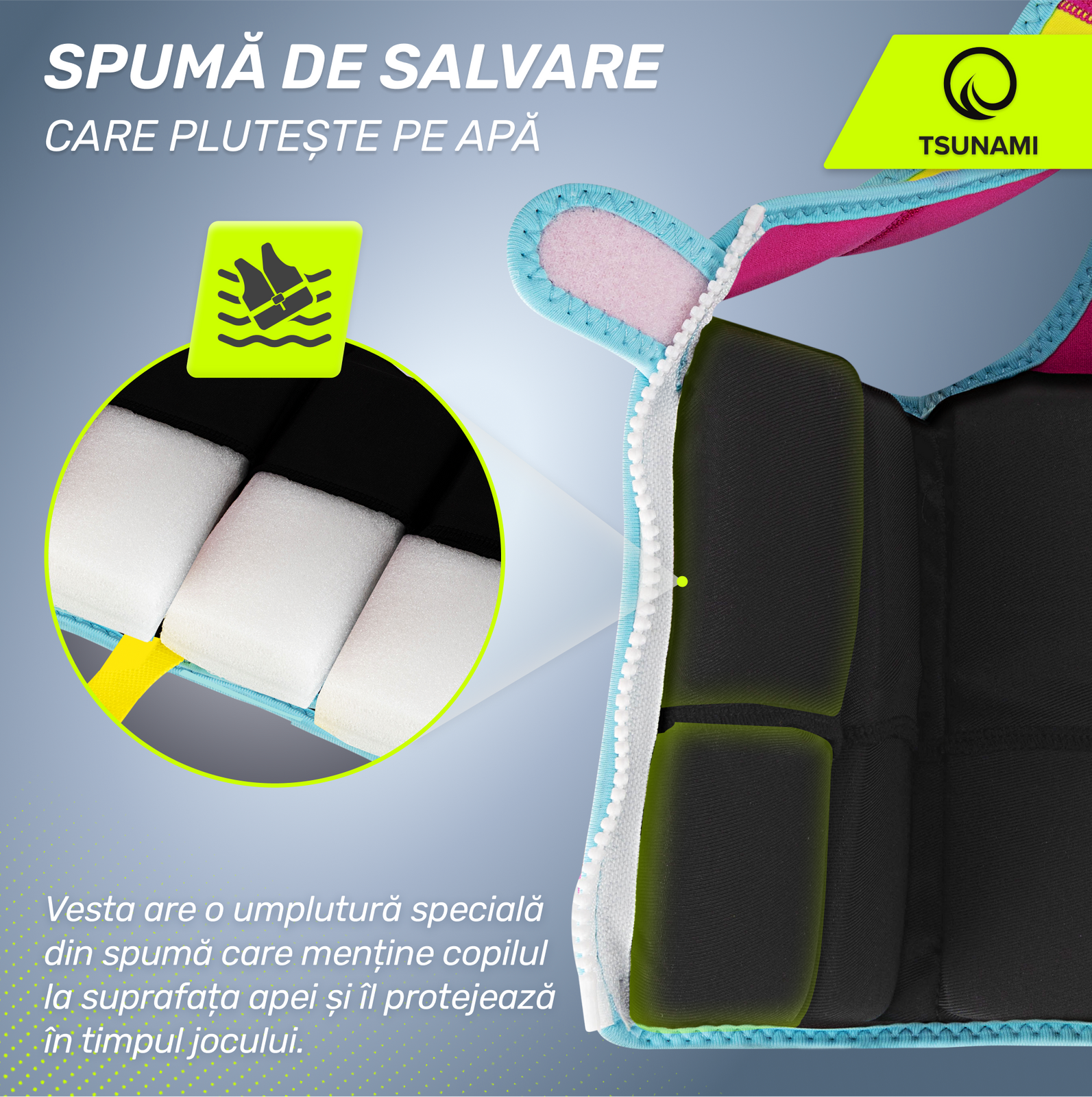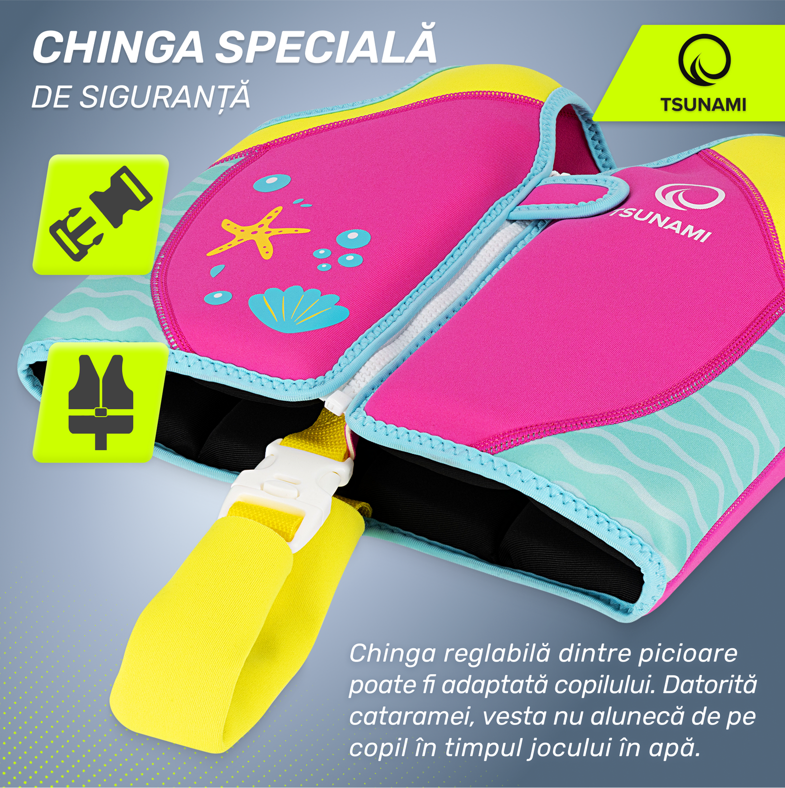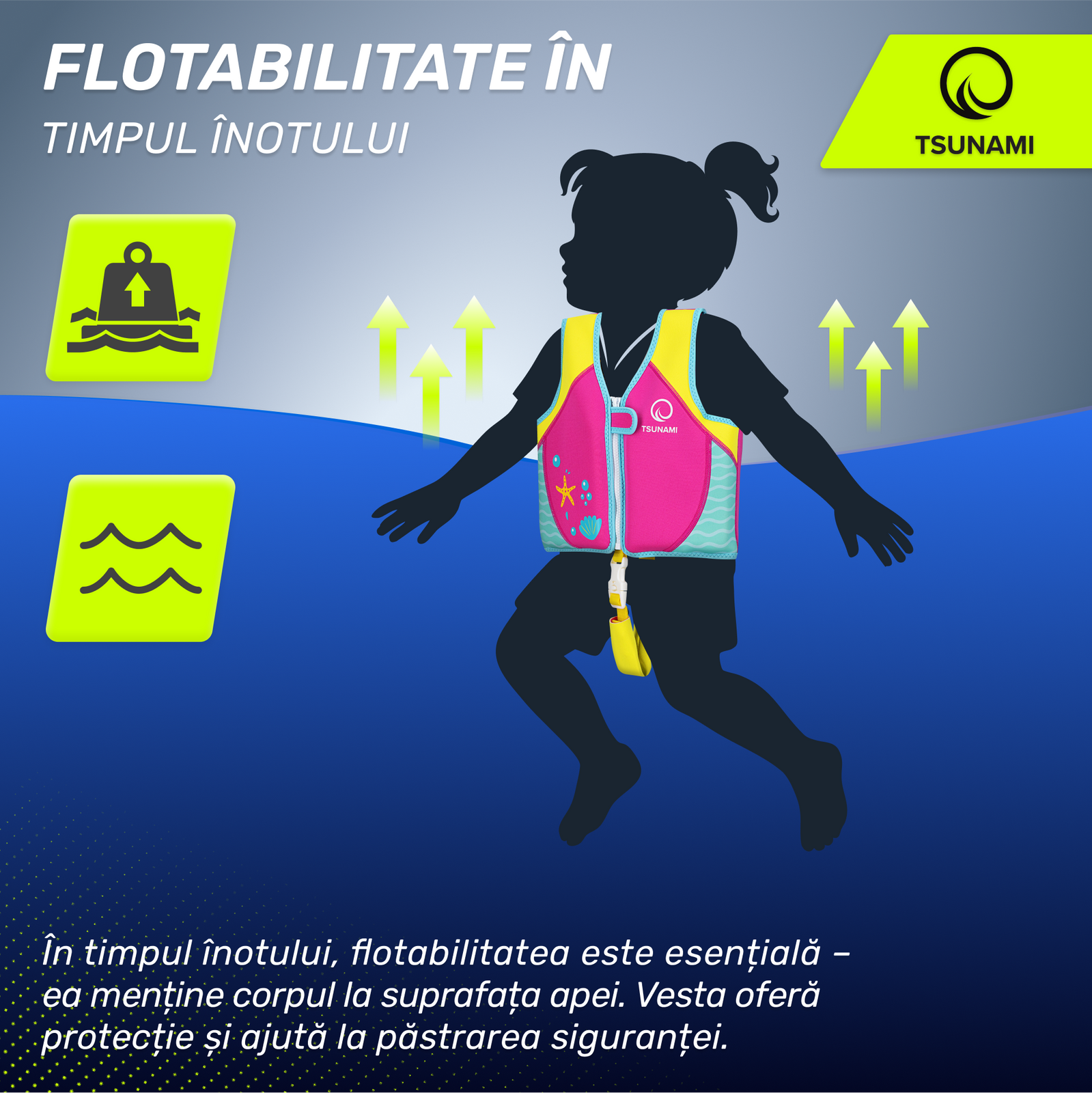 Fie că se află în piscina din grădină, se joacă la lac sau în vacanță la mare, vesta de flotabilitate TSUNAMI vă va ajuta copilul să se simtă încrezător și în siguranță în apă.