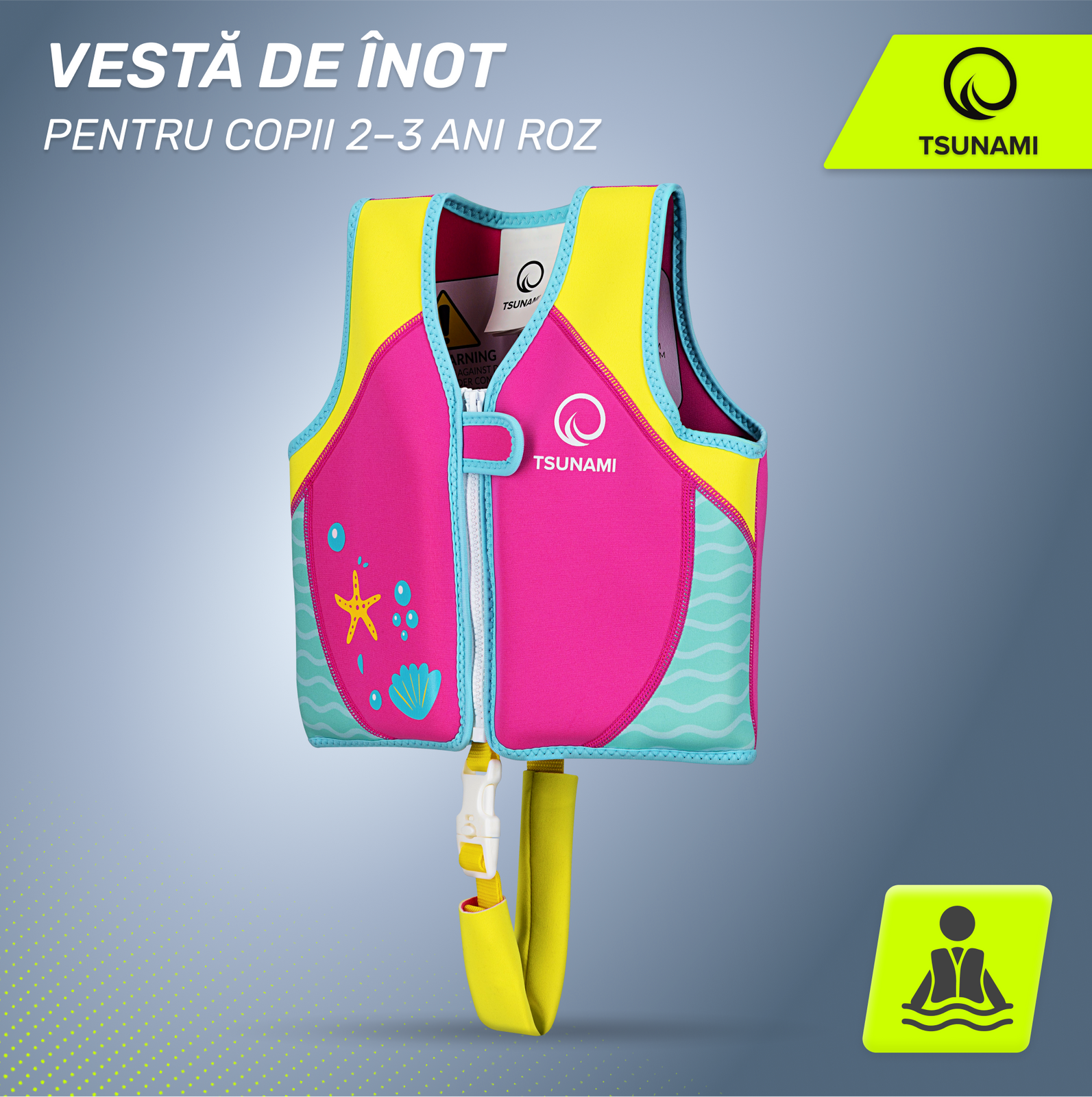 Vestă de înot TSUNAMI pentru copii 2-3 ani roz