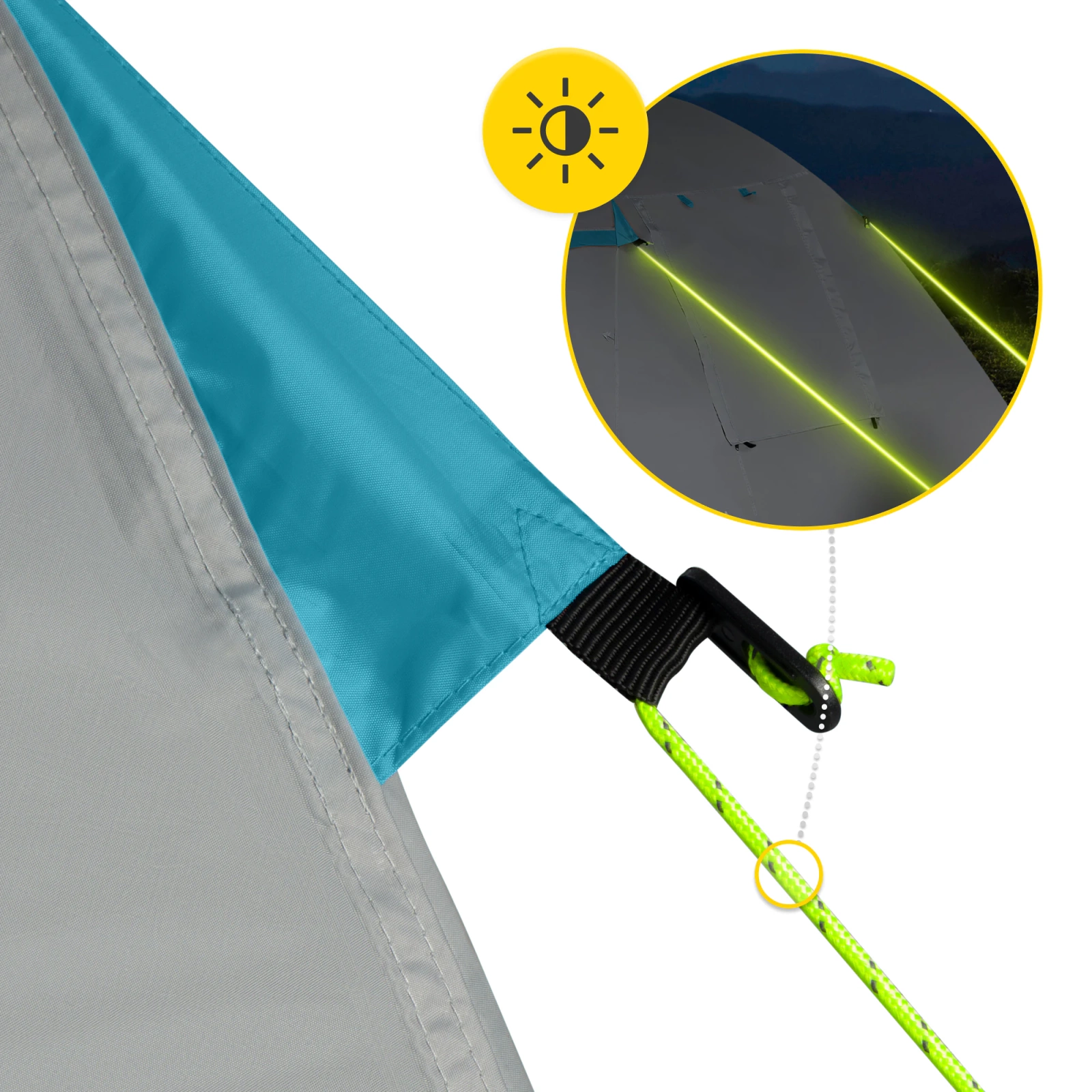 Nu trebuie să vă faceți griji cu privire la ploaie sau roua de dimineață. Musca cortului este fabricată din poliester impermeabil (4000 mm H₂O), iar podeaua este fabricată din polietilenă rezistentă la infiltrații (6000 mm H₂O). În plus, cusăturile au fost atent tapetate pentru a preveni scurgerile în zonele cele mai predispuse la umiditate.