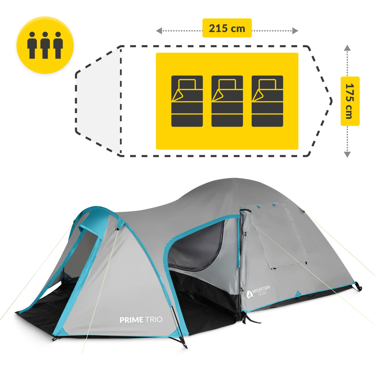 PRIME TRIO MOUNTAIN GOAT vă va oferi un somn confortabil și un adăpost, indiferent de locul în care vă instalați tabăra.