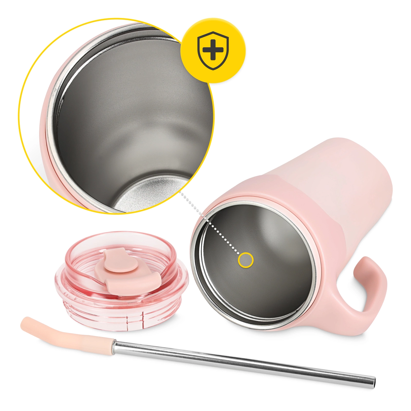 Datorită capacului inovator 3 în 1, decideți singur cum doriți să beți - printr-o bucată, un pai sau poate doar dintr-un recipient deschis. Paiajul este fabricat din oțel, este detașabil și ușor de curățat, permițându-vă să mențineți o igienă completă de utilizare.