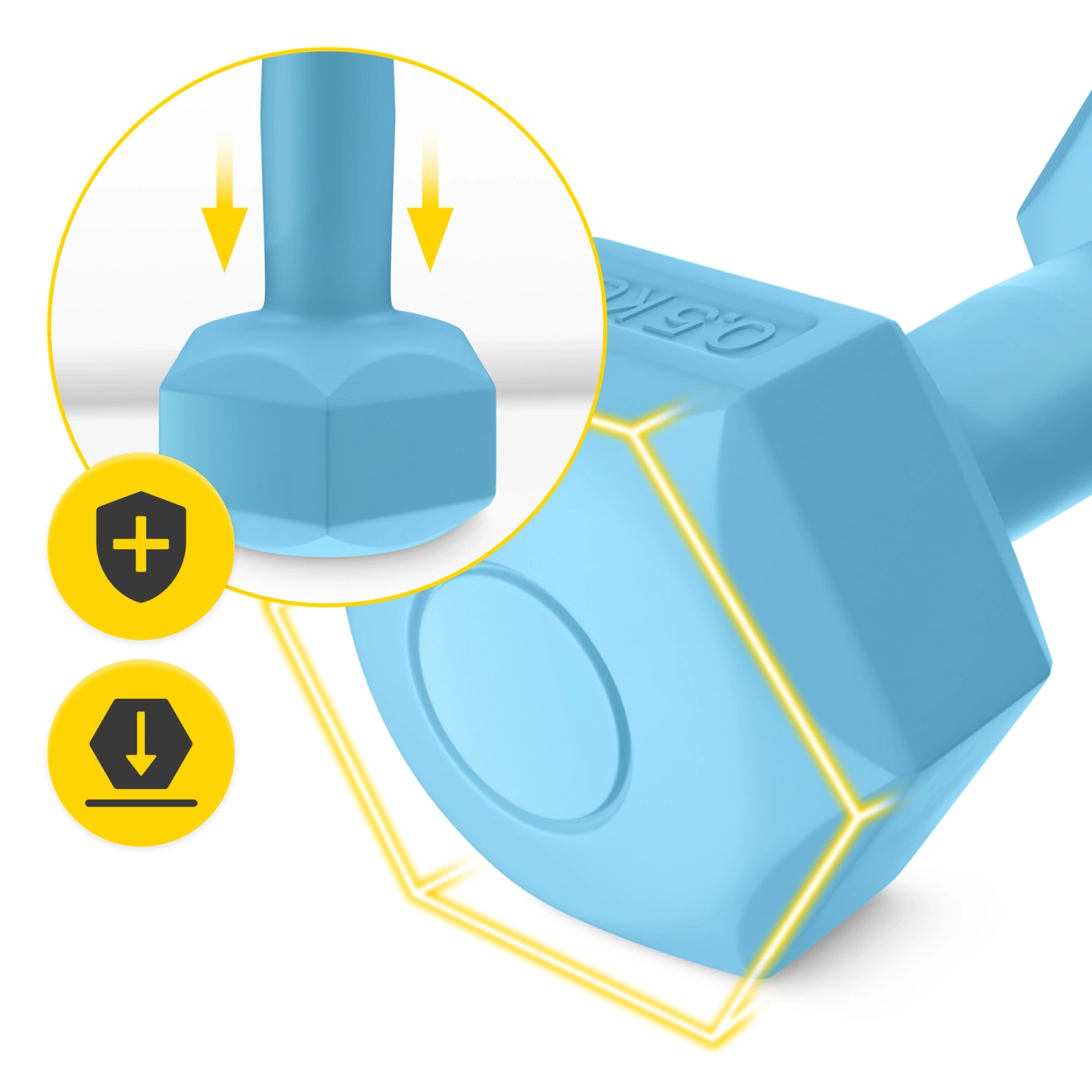 ▶️ Învelișul halterelor protejează podeaua de zgârieturi, iar forma hexagonală împiedică echipamentul să se rostogolească pe podea, ceea ce sporește siguranța în timpul antrenamentului.