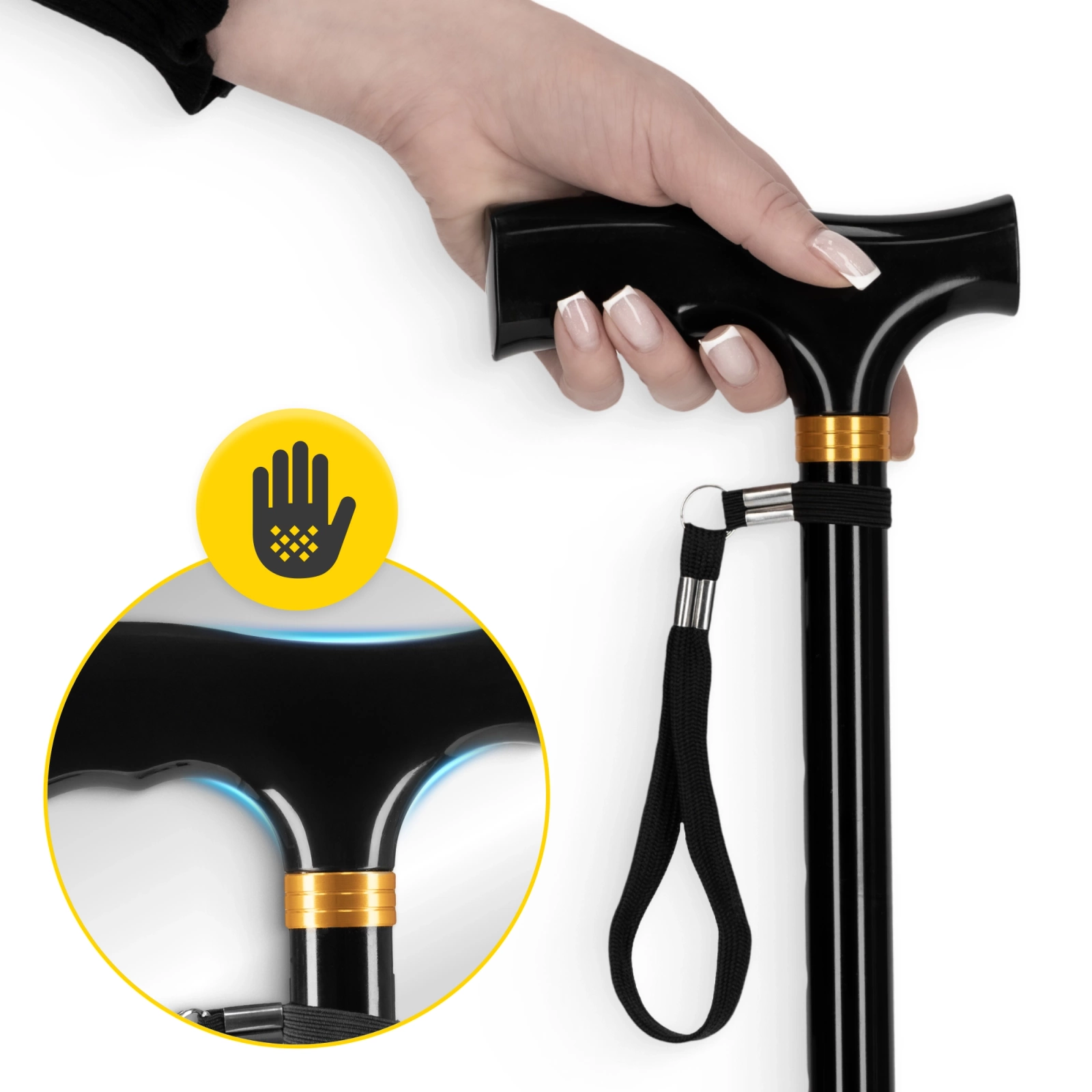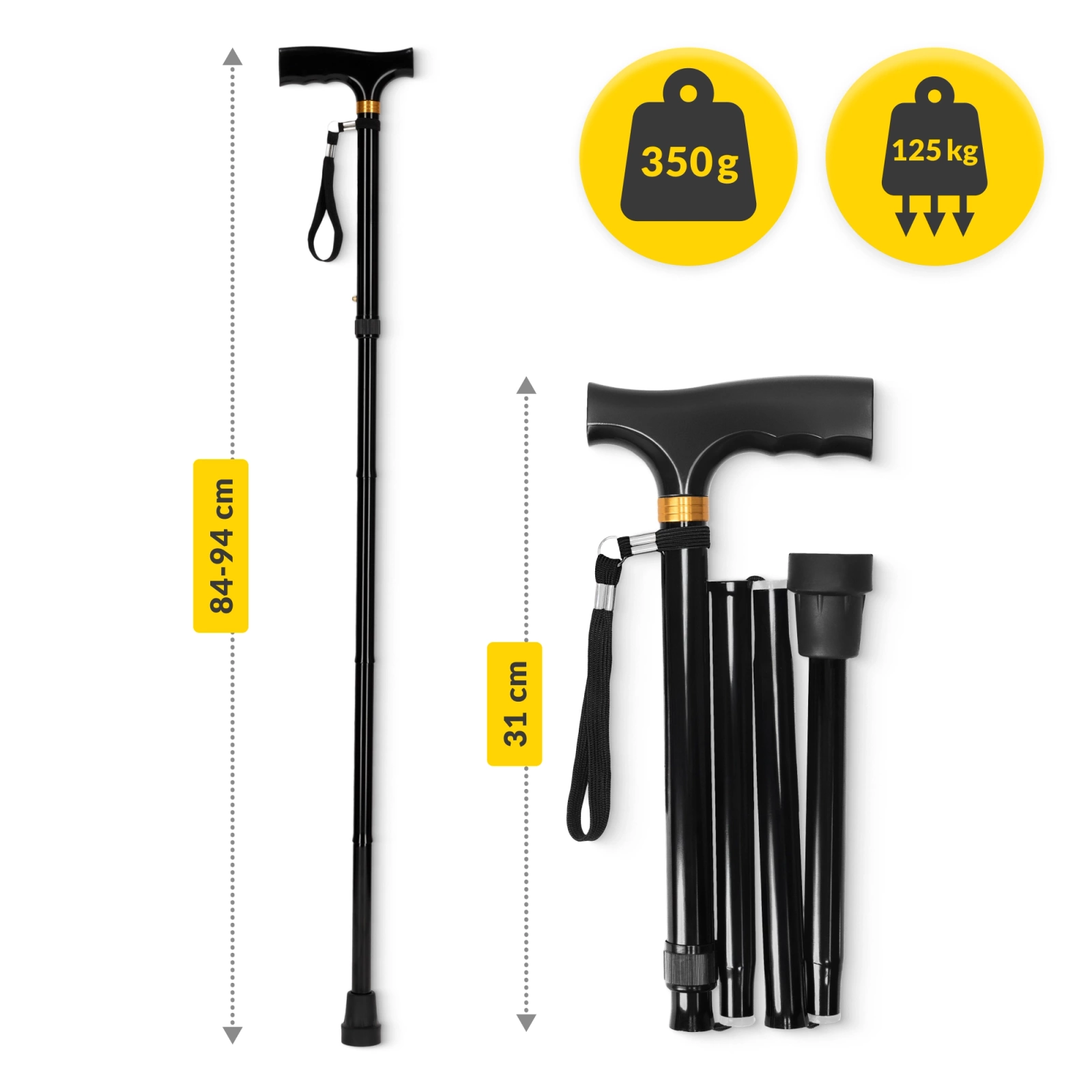 Acest baston pliabil cu mâner din lemn este ideal atât pentru uz casnic, cât și pentru plimbări sau călătorii. Combină funcționalitatea, siguranța și aspectul elegant, oferind utilizatorului siguranță în fiecare situație.
