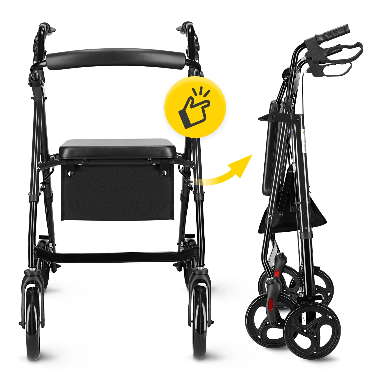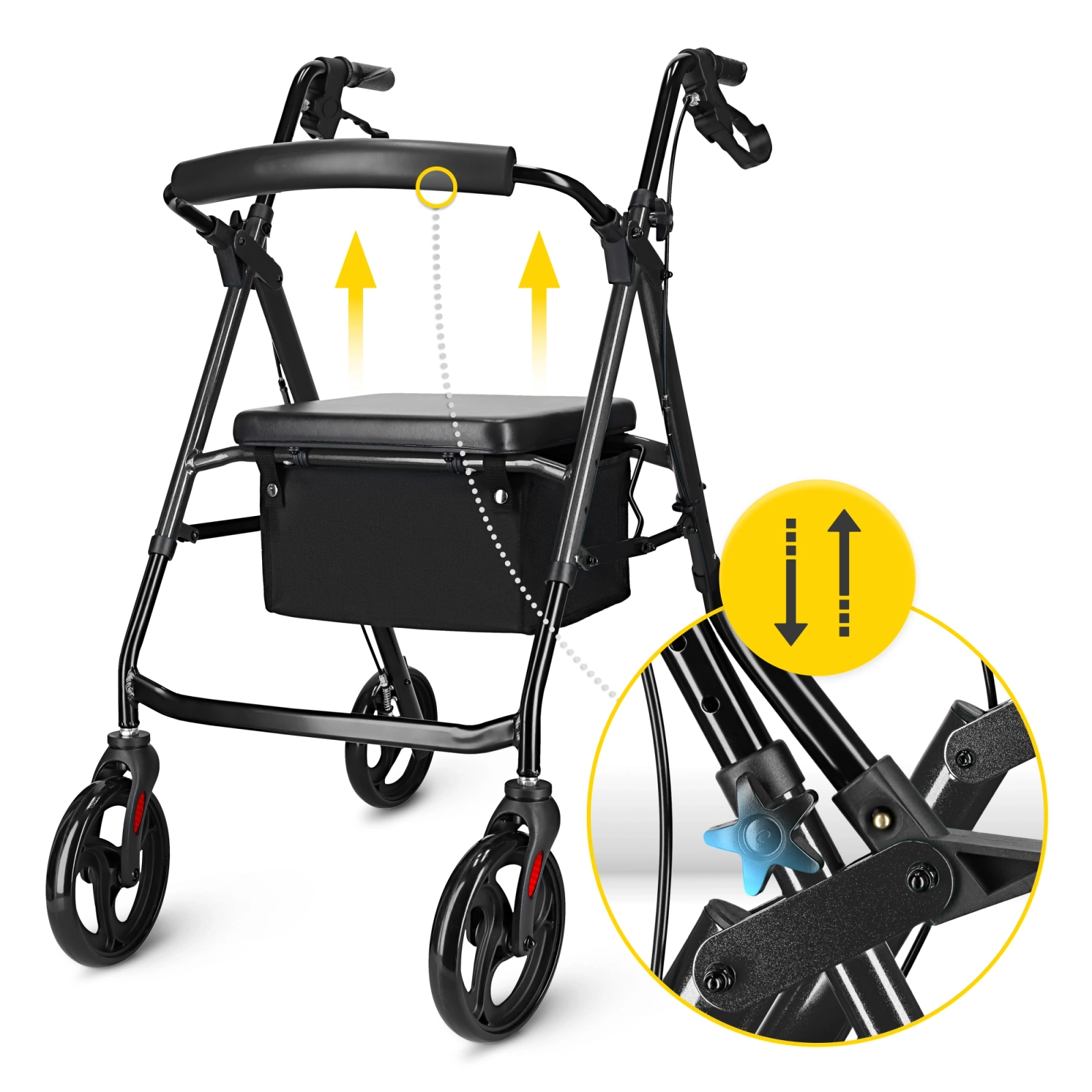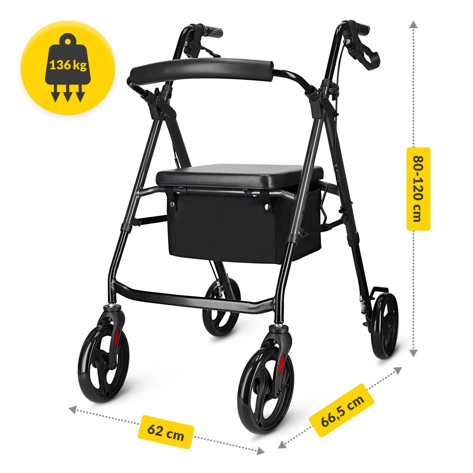 ✔️Tip: rollator cu patru roți, cu scaun și geantă