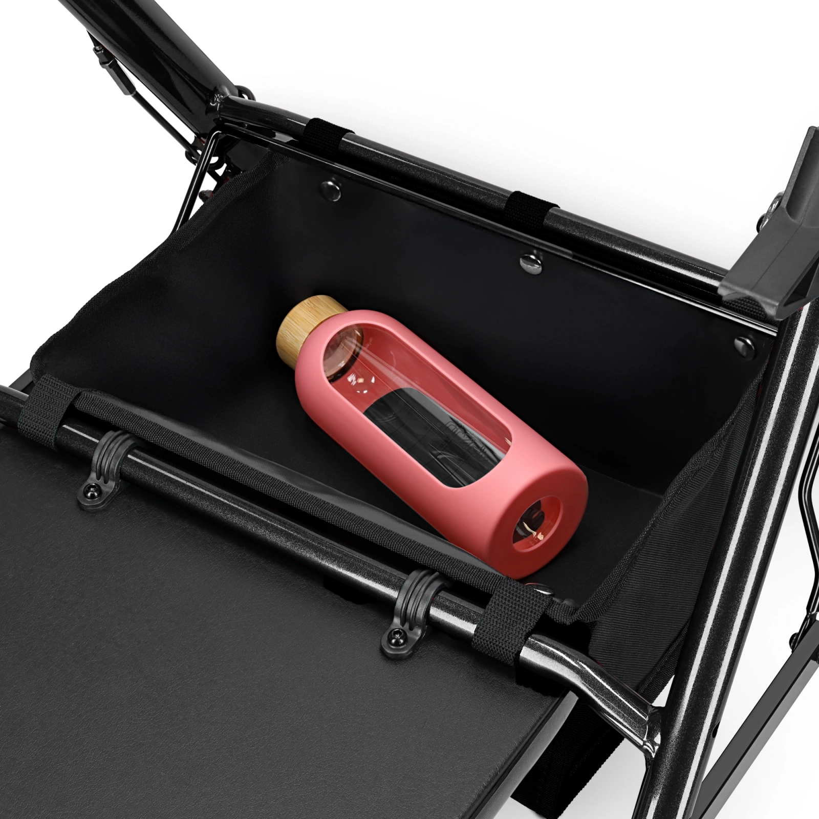 Scaunul moale, cu dimensiunile de 46 × 24 cm, asigură un confort sporit în orice moment. Geanta de sub scaun poate fi folosită pentru depozitarea cumpărăturilor și a obiectelor mici.