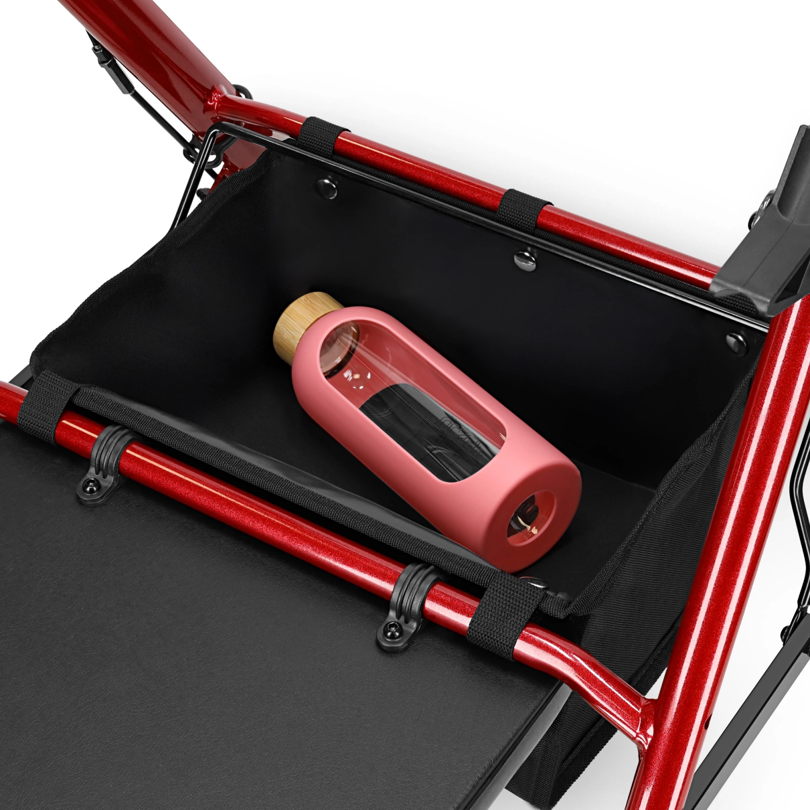 Rollatorul includ iar spațiul suplimentar de depozitare este asigurat de coșul de sub scaun – soluția ideală pentru cumpărături și plimbări.