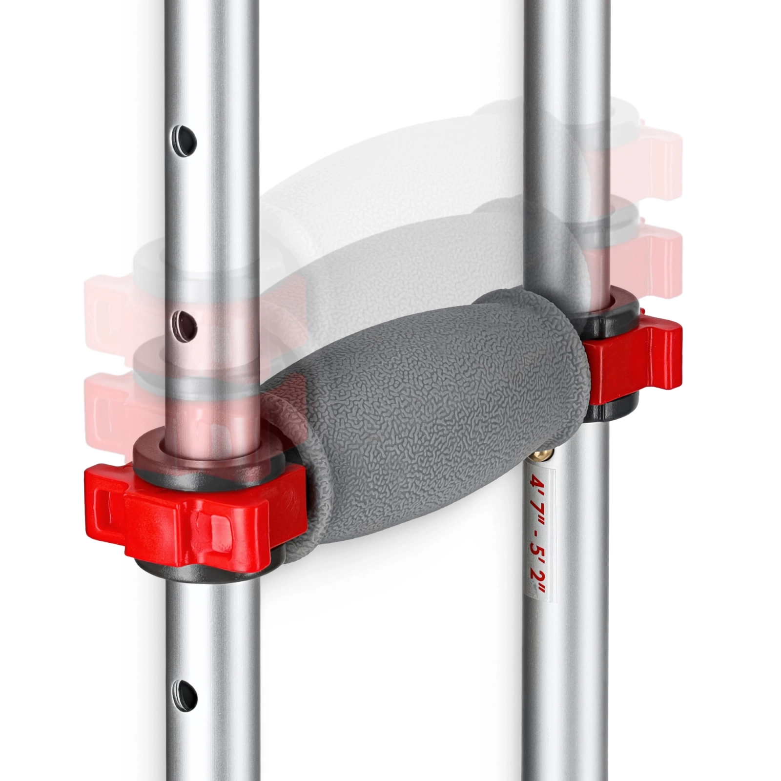 Gama largă de reglaje pe înălțime permite ajustarea ușoară a bilelor în funcție de înălțimea dvs. – de la 140 până la 200 cm. Este o alegere perfectă atât pentru adulți, cât și pentru utilizatori mai tineri, de exemplu în timpul recuperării după o accidentare sportivă.
