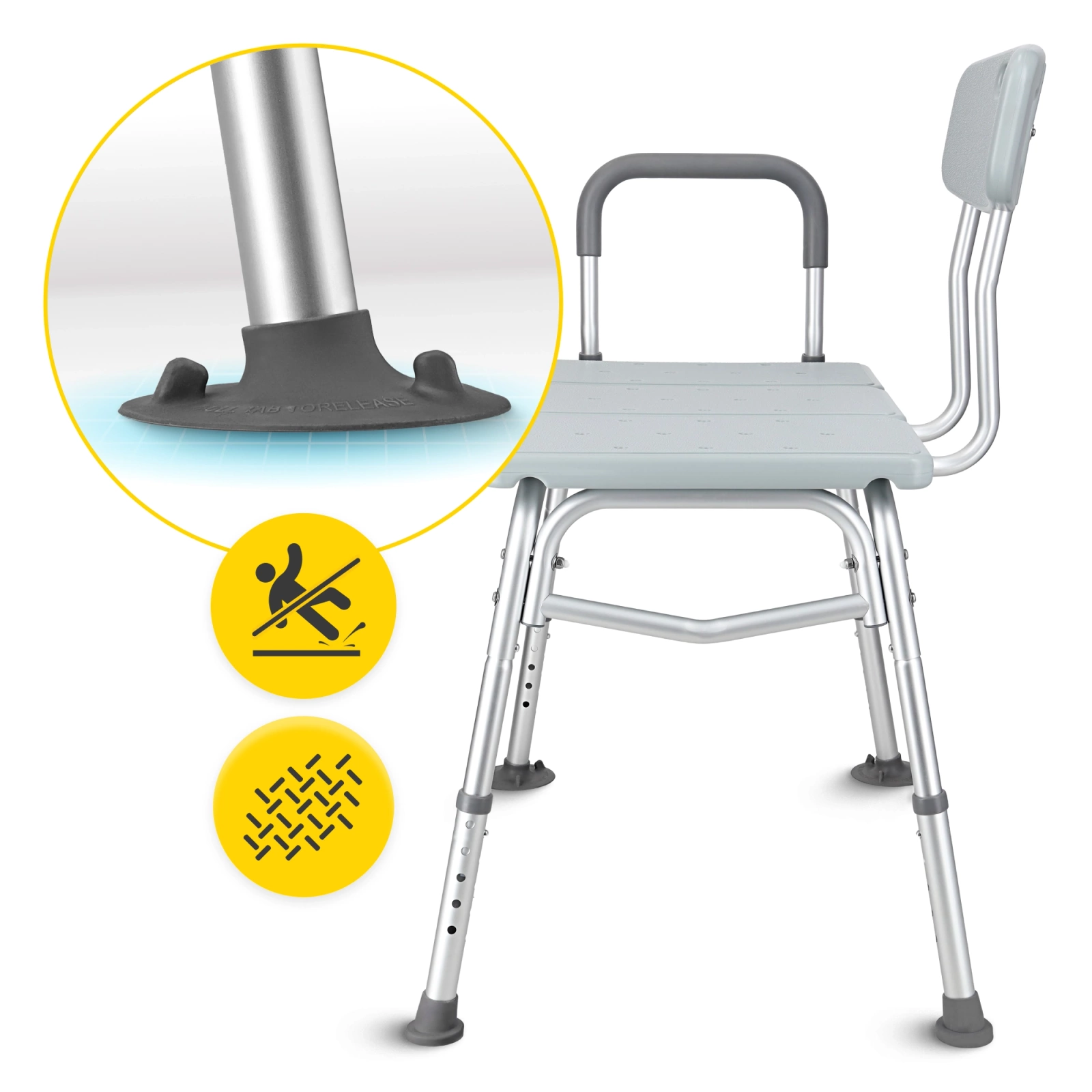 Acest scaun de baie durabil, ușor și rezistent la umiditate vă permite să vă păstrați independența în timpul băii. Materialele rezistente la coroziune și scaunul ergonomic cu spătar fac ca utilizarea zilnică să fie confortabilă și sigură pentru toată lumea, indiferent de limitările de mișcare. Picioarele cu ventuze din cauciuc asigură stabilitate pe suprafețe umede și protejează împotriva alunecării.