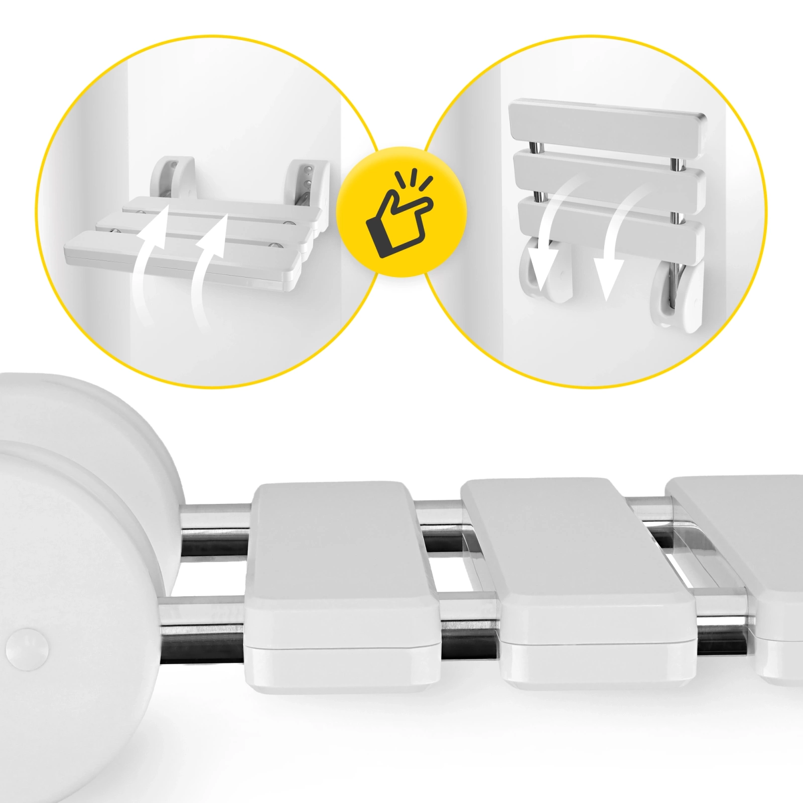 ▶️Design compact – scaunul pliabil pentru baie permite economisirea spațiului în cabină.